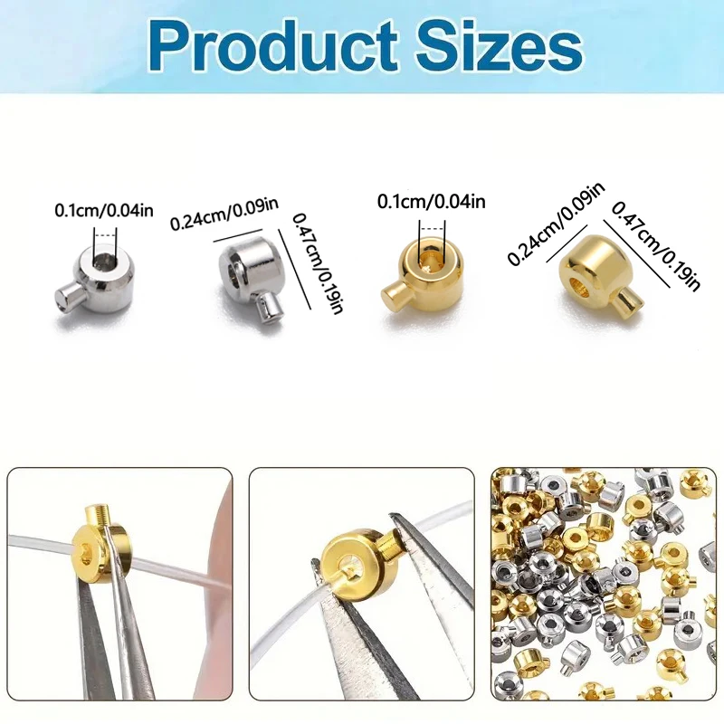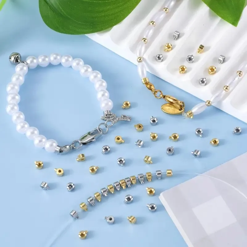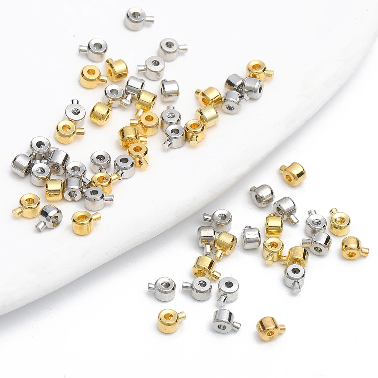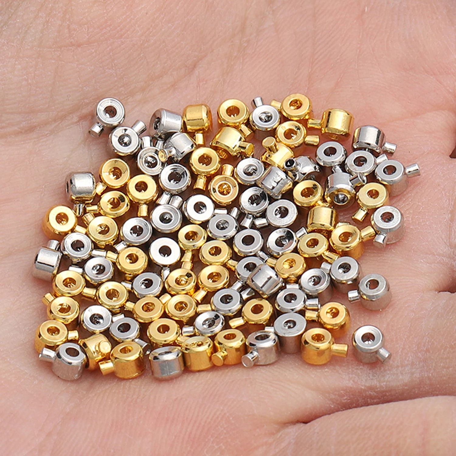 Name:10pcs/lot Gold Color Stainless Steel Stopper Beads Crimp End Beads for Wire Stopper Rondelle Beads Diy Jewelry Accessories