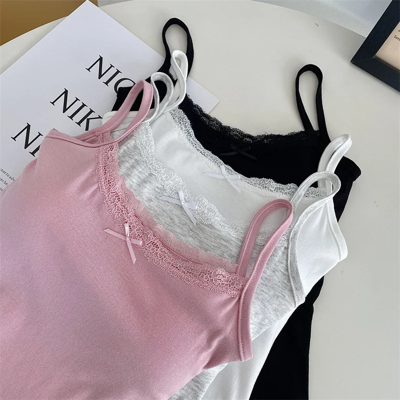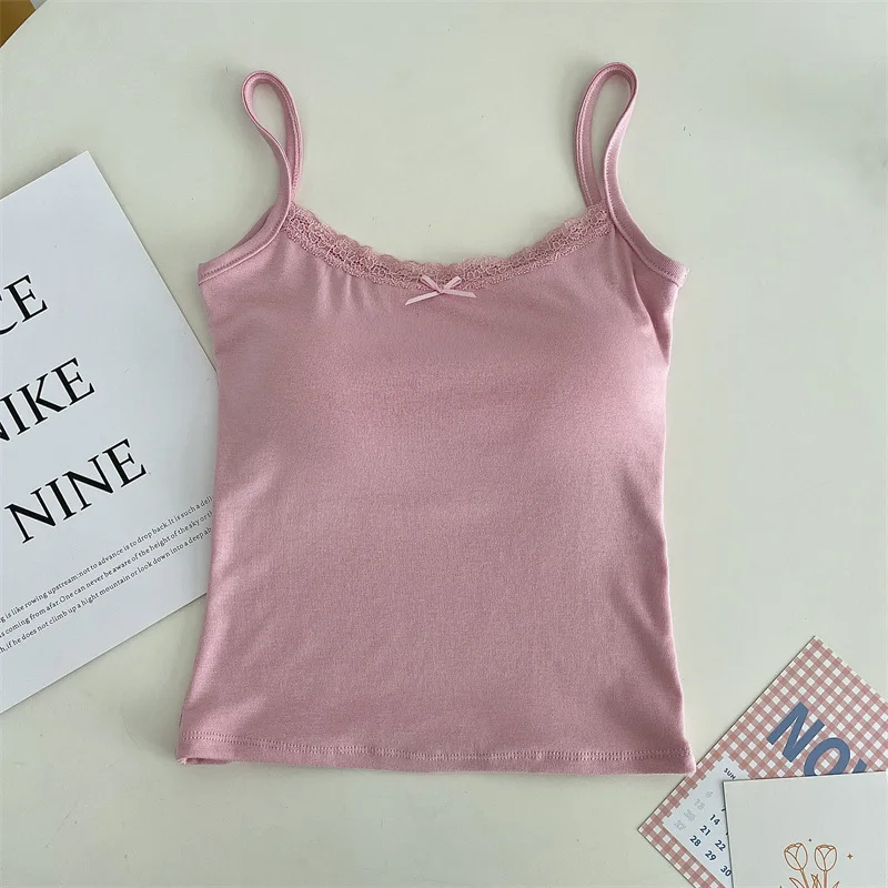 1pcs Girl Cute Padded Bra Tank Top Women Lace Casual Strap Top Vest Female Camisole With Removable Built In Bra Clothing