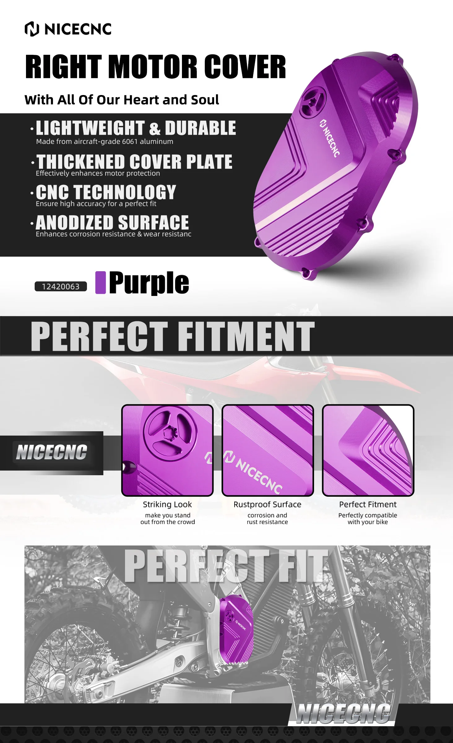 Enhance the protection and elevate the appearance of your electric bike with the NICECNC Right Large Motor Cover —a high-quality accessory designed to improve both performance and aesthetics. Crafted from T6061 aluminum alloy, this cover is precisely manufactured using CNC machining and finished with an anodized surface, offering exceptional durability along with a sleek, modern metallic finish.