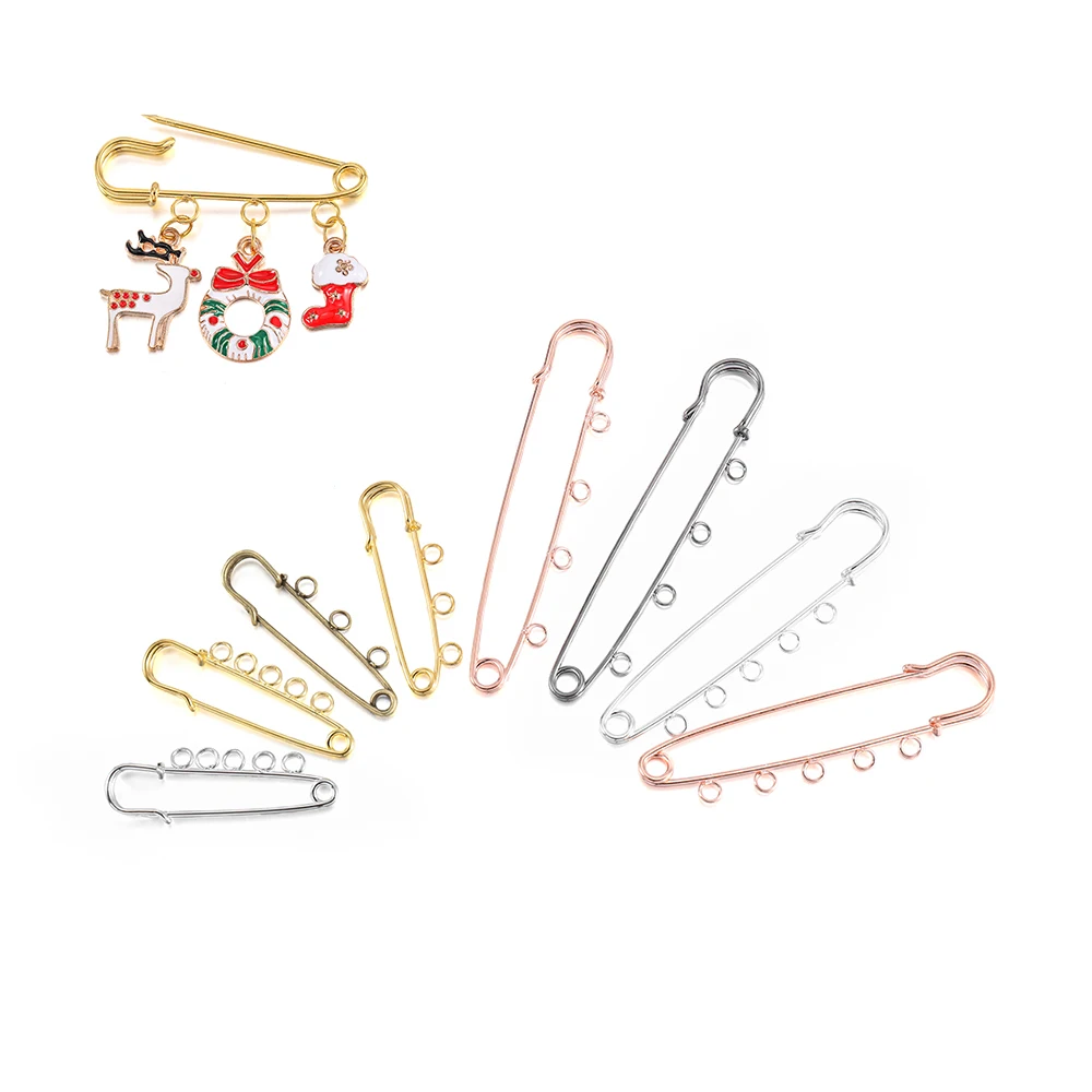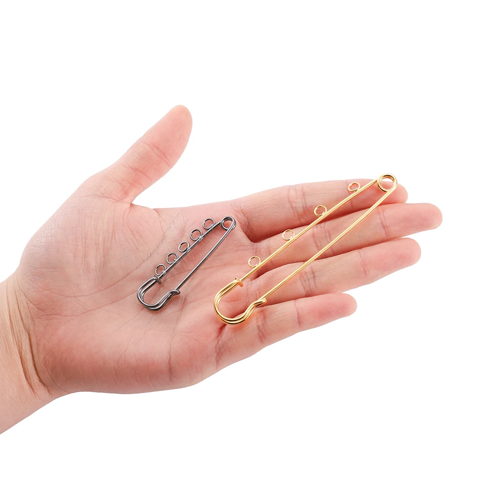 5/10pcs Safety Pins Brooch Blank Base Brooch Pins 50/80/90mm Pins 3/5 Rings Jewelry Pin for Jewelry Making Supplies Accessories
