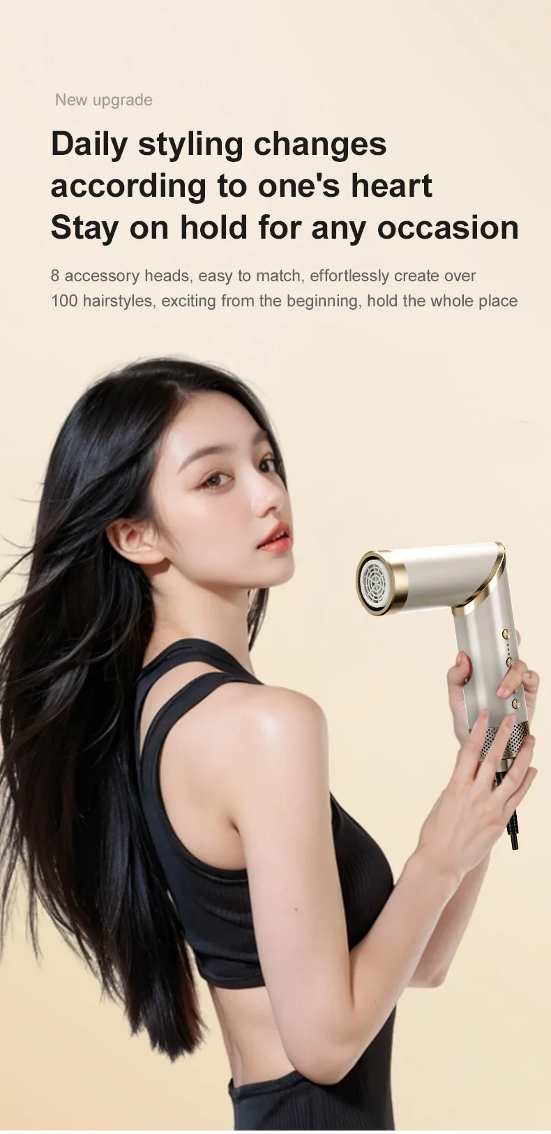 Breaking through the boundary between traditional styling tools and hair dryers, innovating rotational design, switching between blowing and styling modes in one second, with new damping and no need for buttons, creating a new protective gameplay