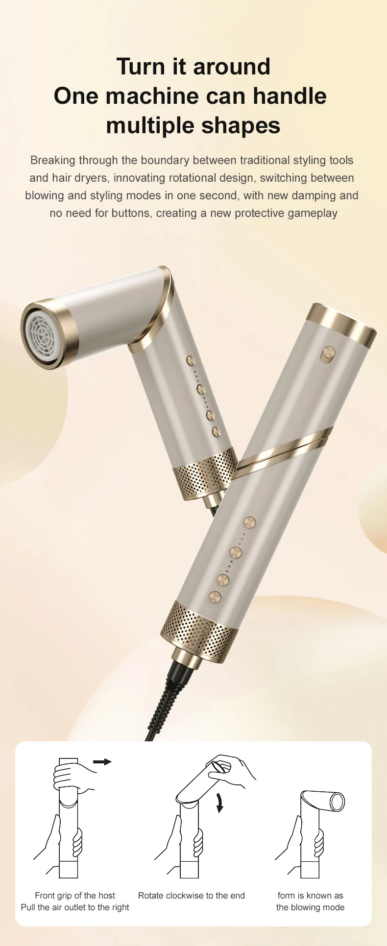 Breaking through the boundary between traditional styling tools and hair dryers, innovating rotational design, switching between blowing and styling modes in one second, with new damping and no need for buttons, creating a new protective gameplay