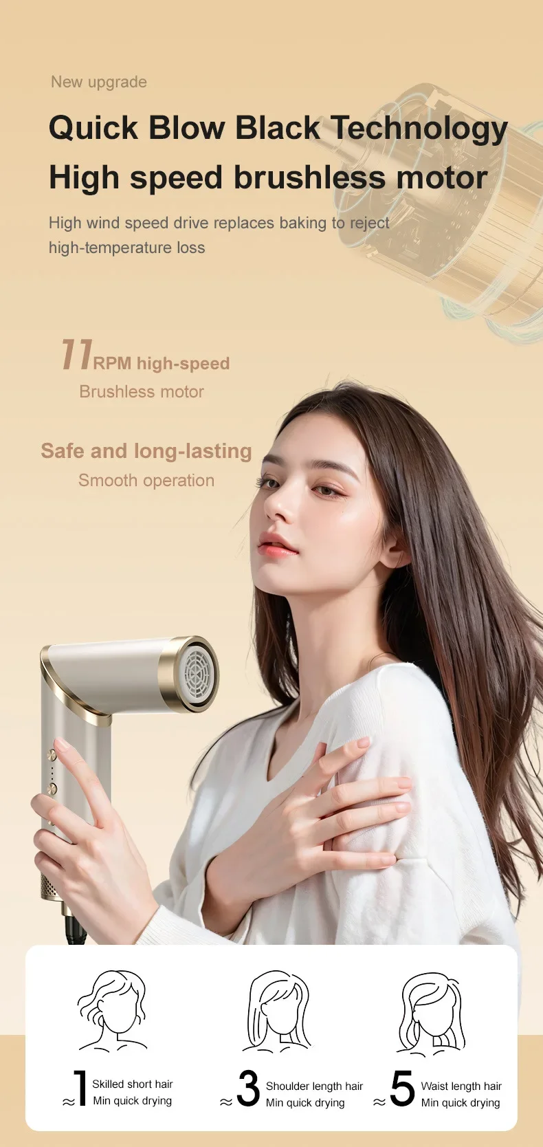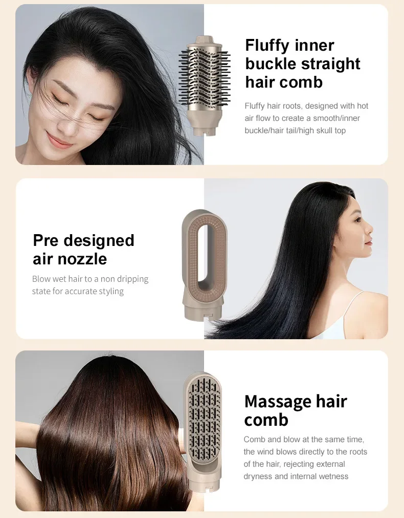 Bringing comfortable temperature and airflow experience.caring for hair to reduce moisture loss,combing and drying hair at the same time, two-stepintegration saves time and effort