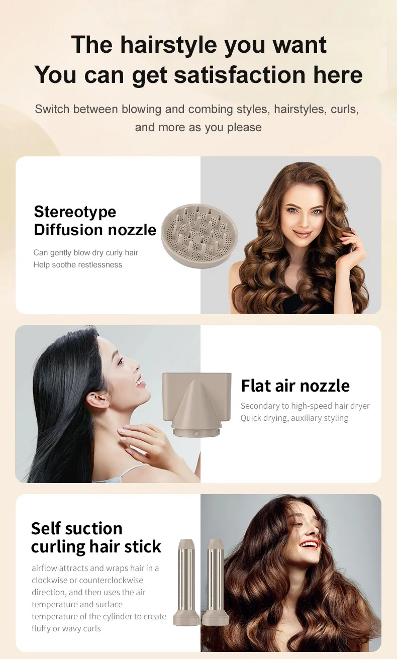 Switch between blowing and combing styles, hairstyles, curls,and more as you please