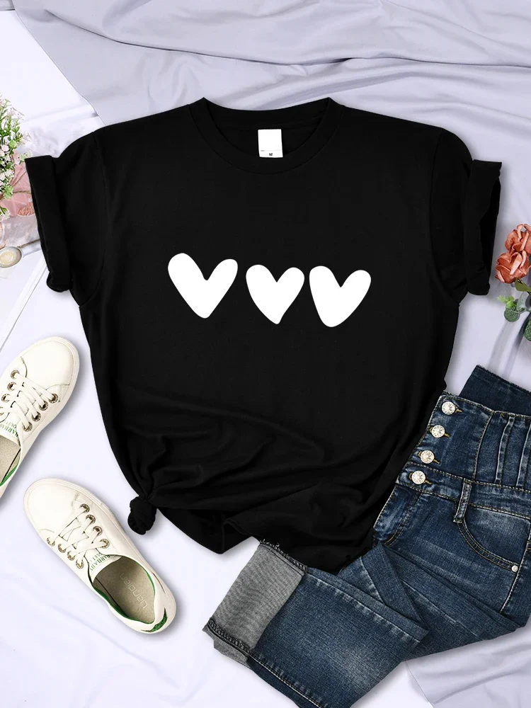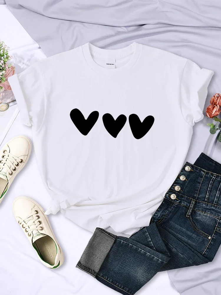 Black Heart Printing Female T-Shirts Personality Street Short Sleeve All-math Soft Tee Clothing Casual Breathable Women Tops