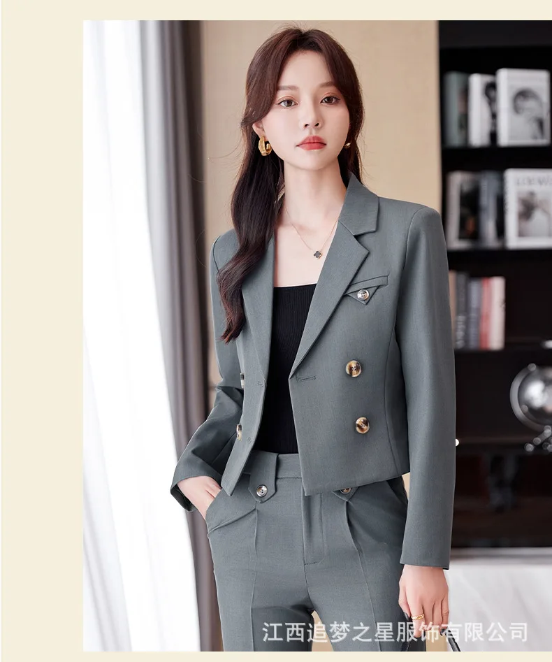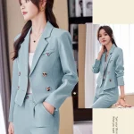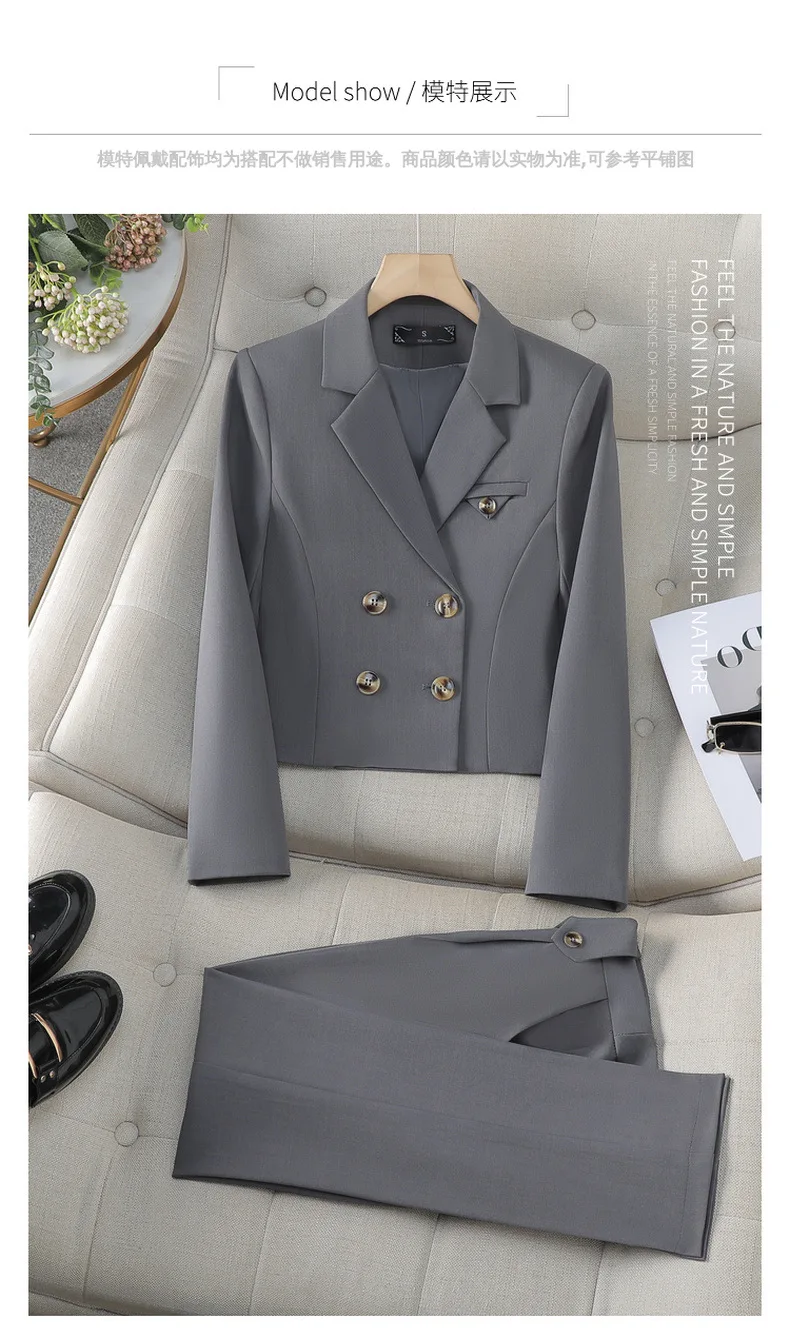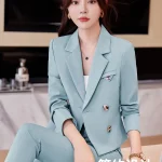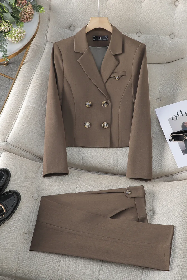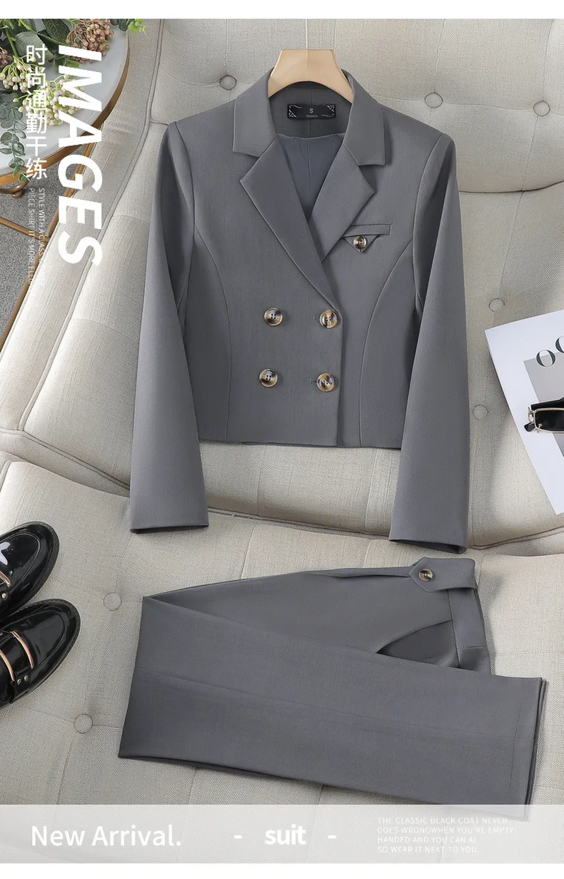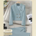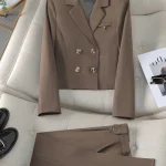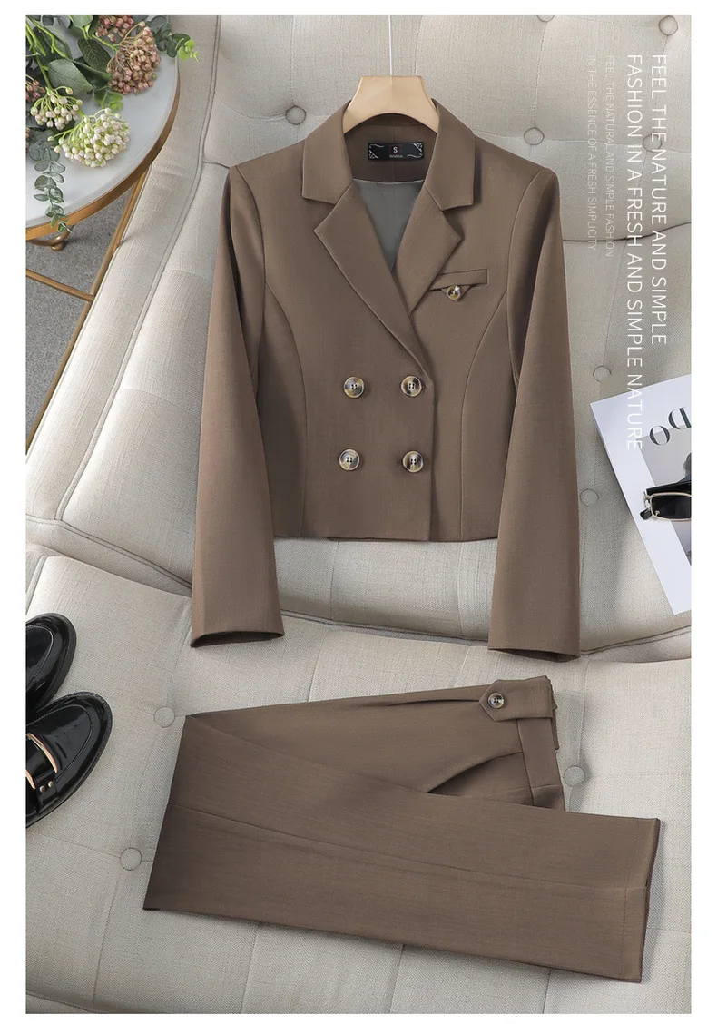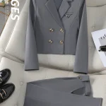 Featuring a classic double-breasted front style and button decoration, this pant suit exudes sophistication and timeless fashion.
