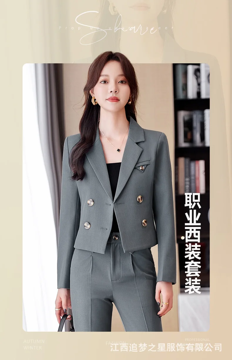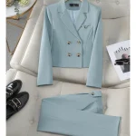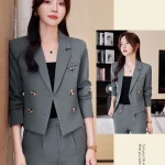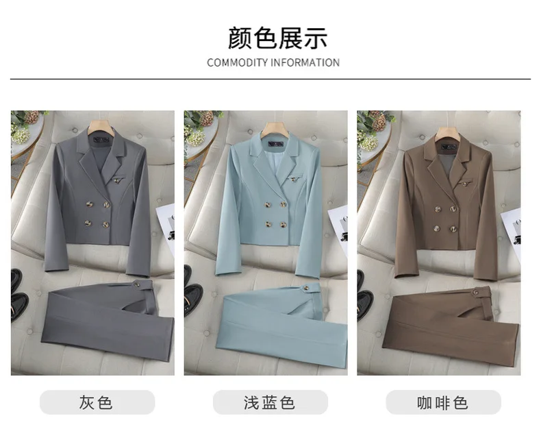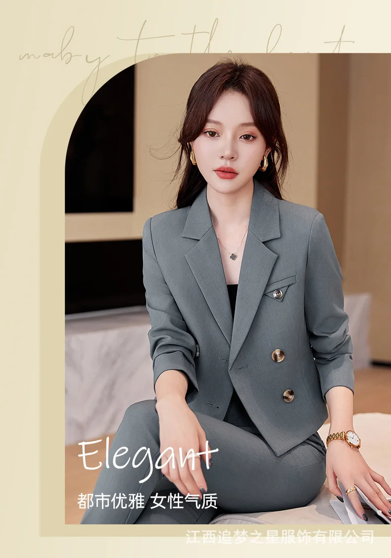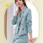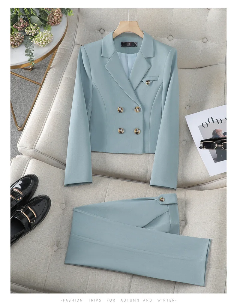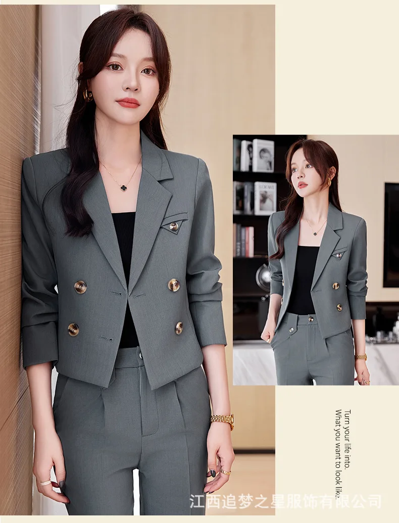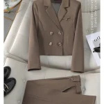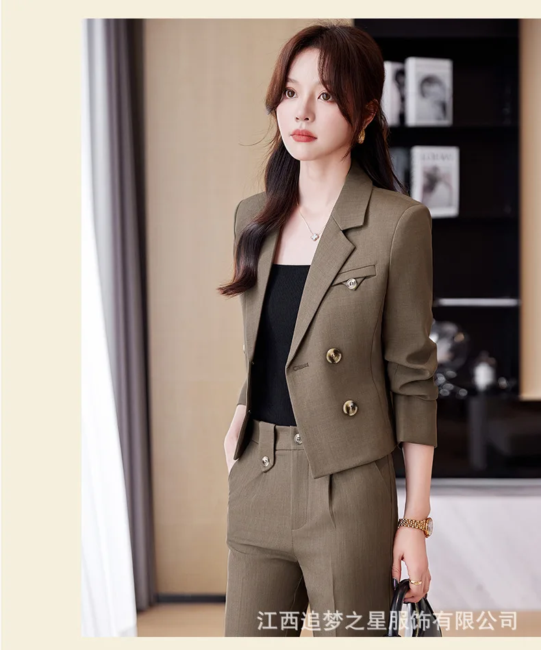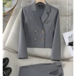 Featuring a classic double-breasted front style and button decoration, this pant suit exudes sophistication and timeless fashion.
