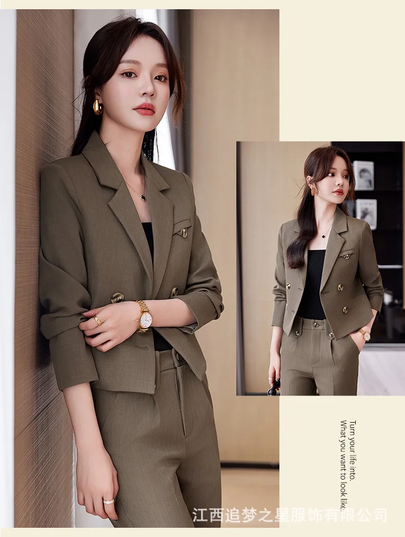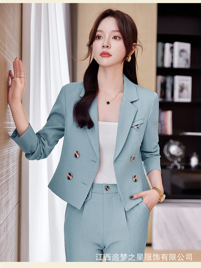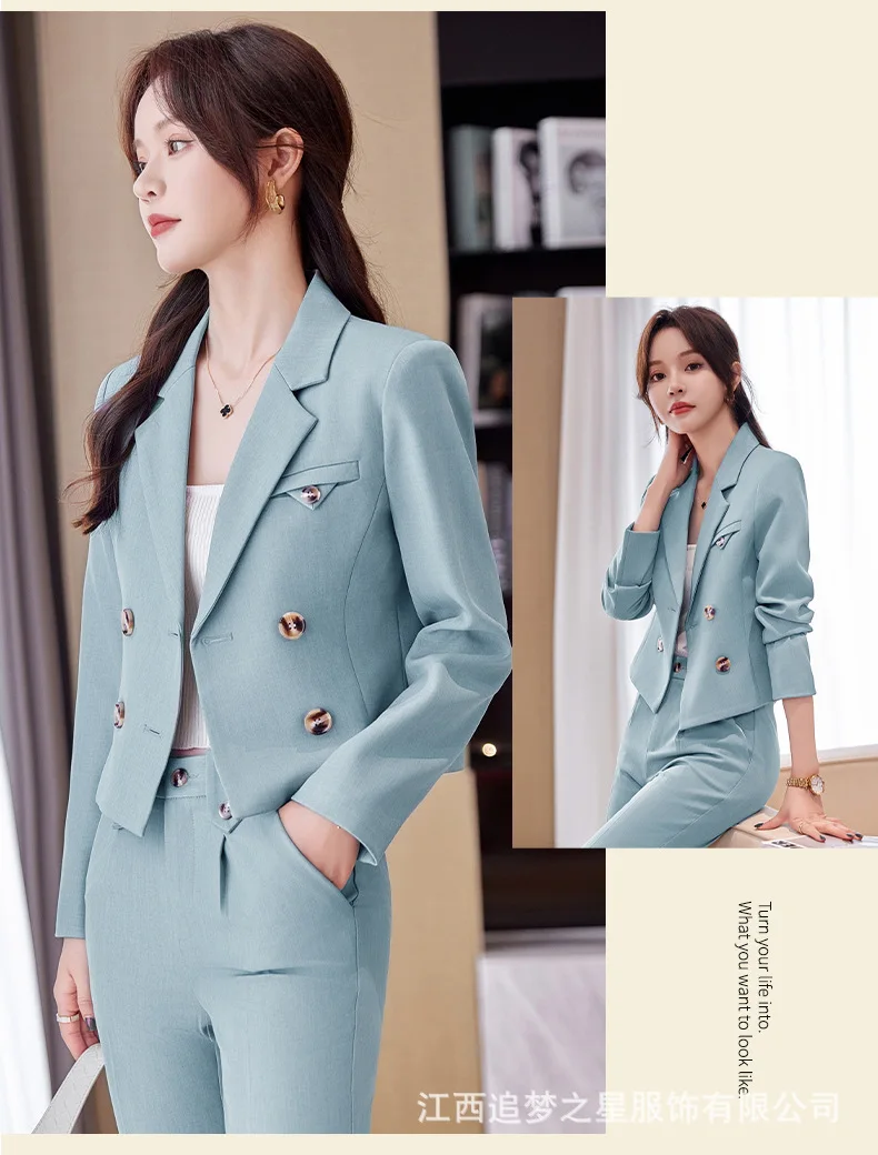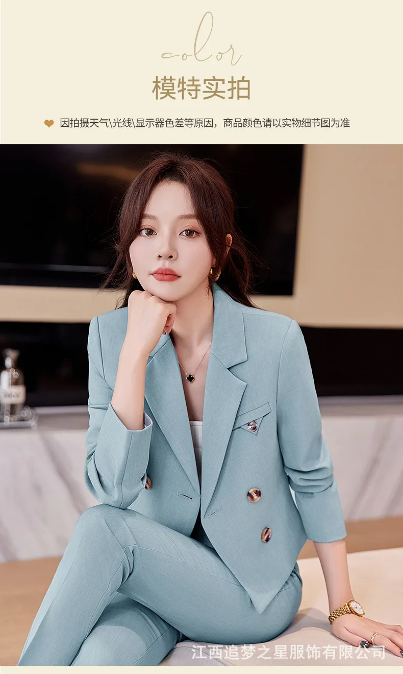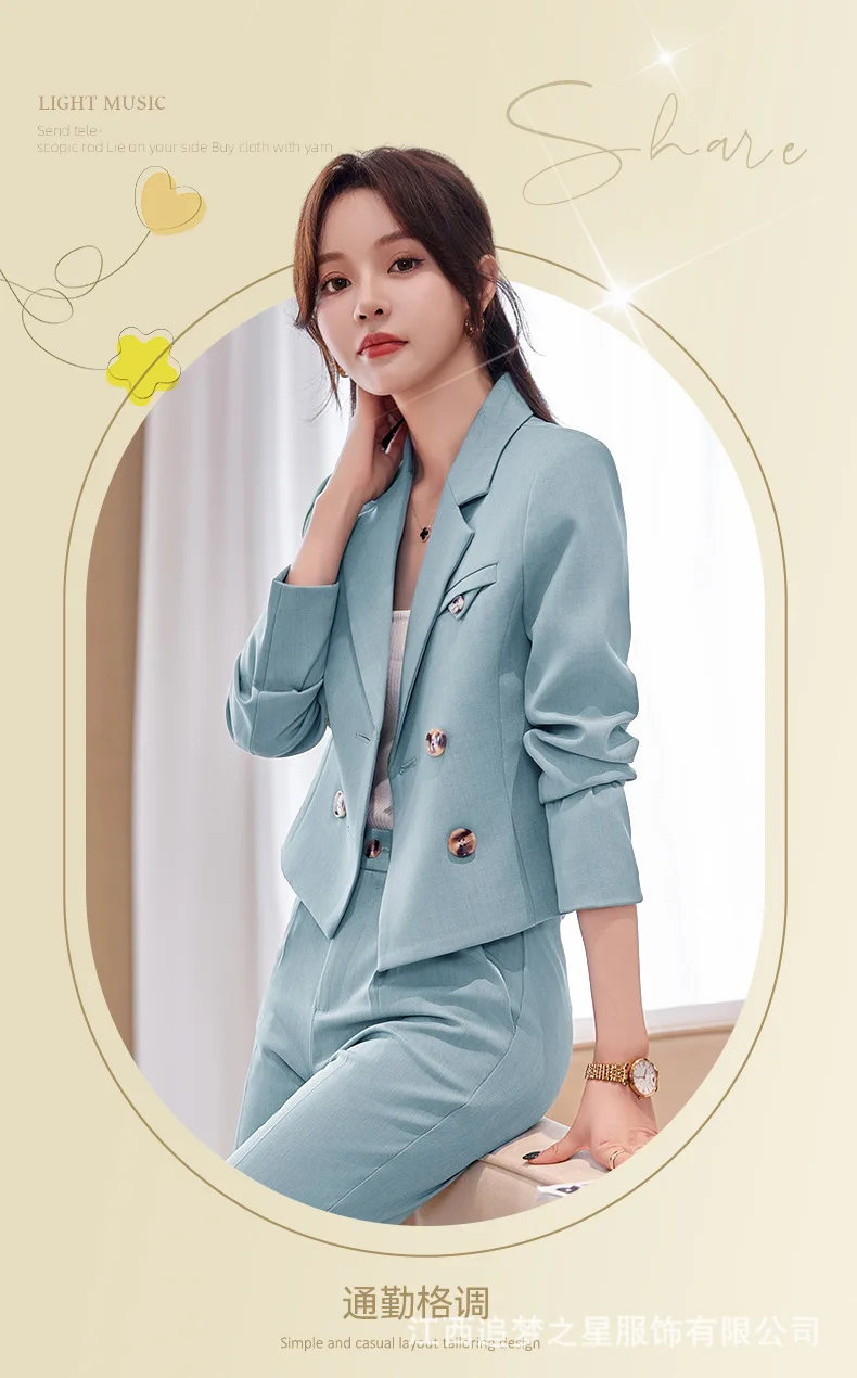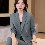 Featuring a classic double-breasted front style and button decoration, this pant suit exudes sophistication and timeless fashion.
