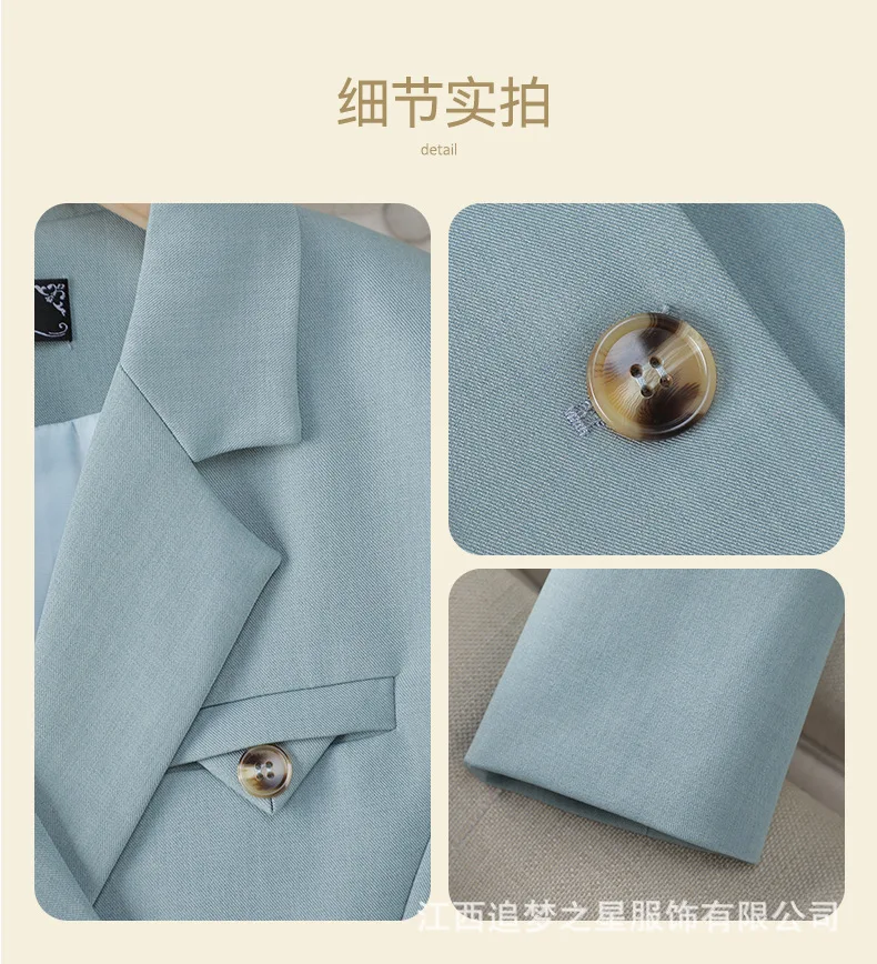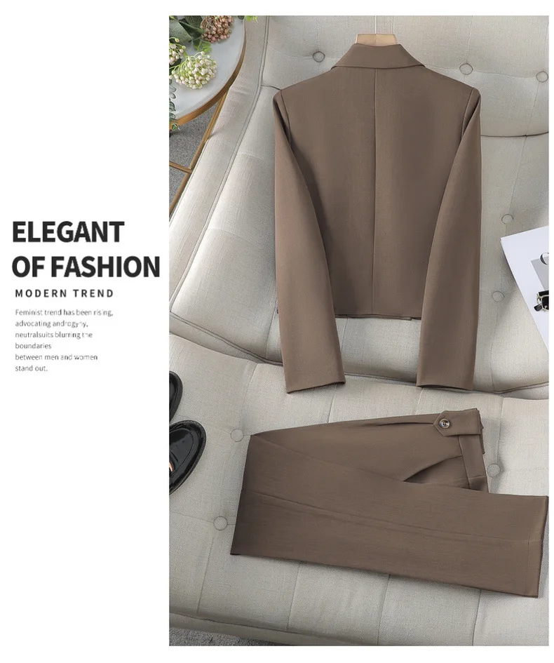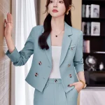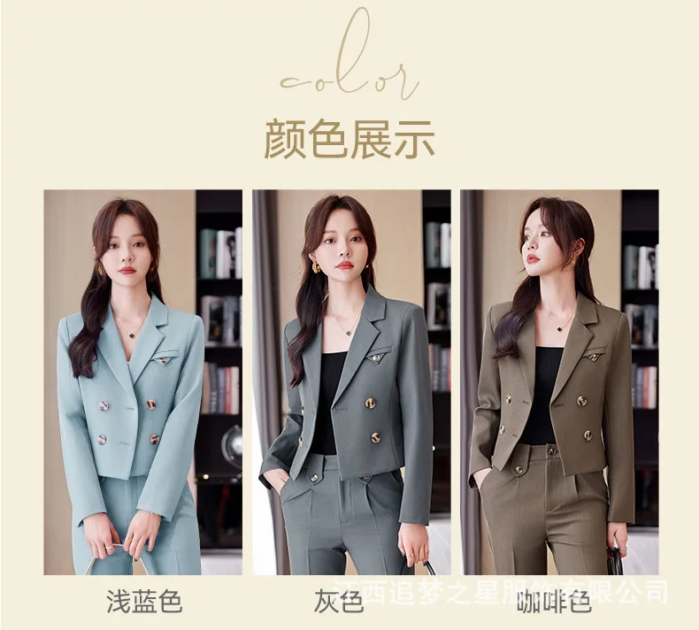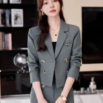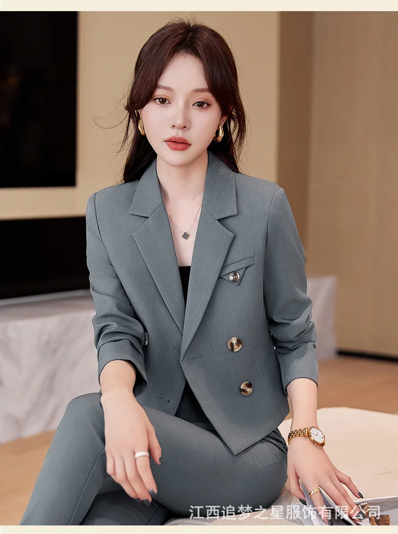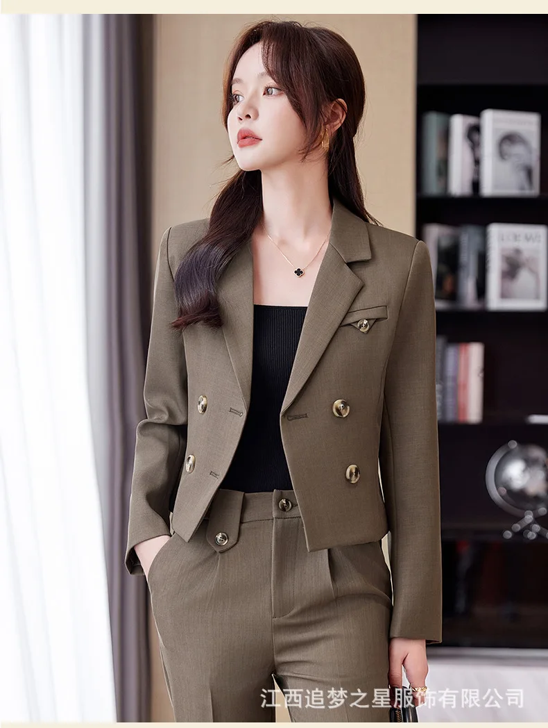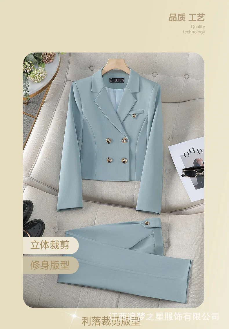 Featuring a classic double-breasted front style and button decoration, this pant suit exudes sophistication and timeless fashion.