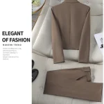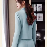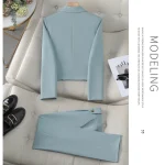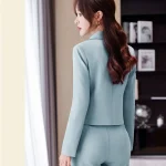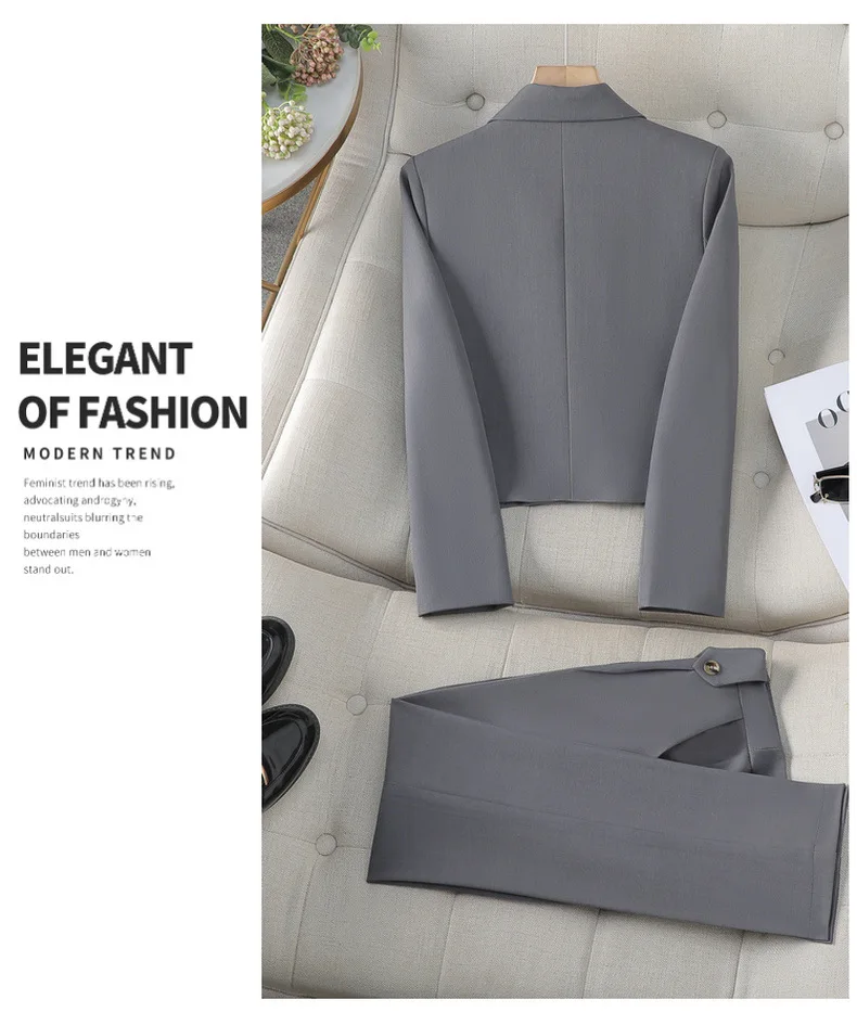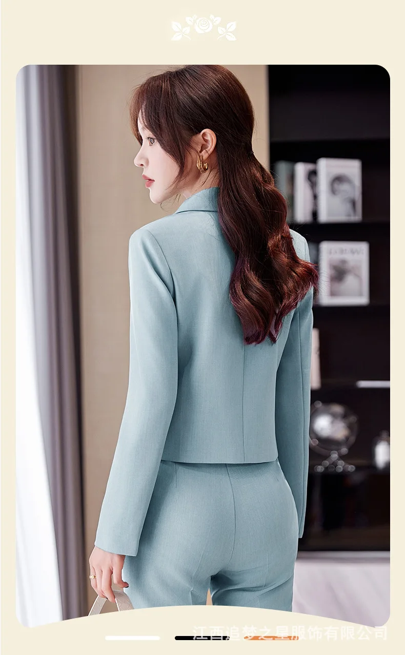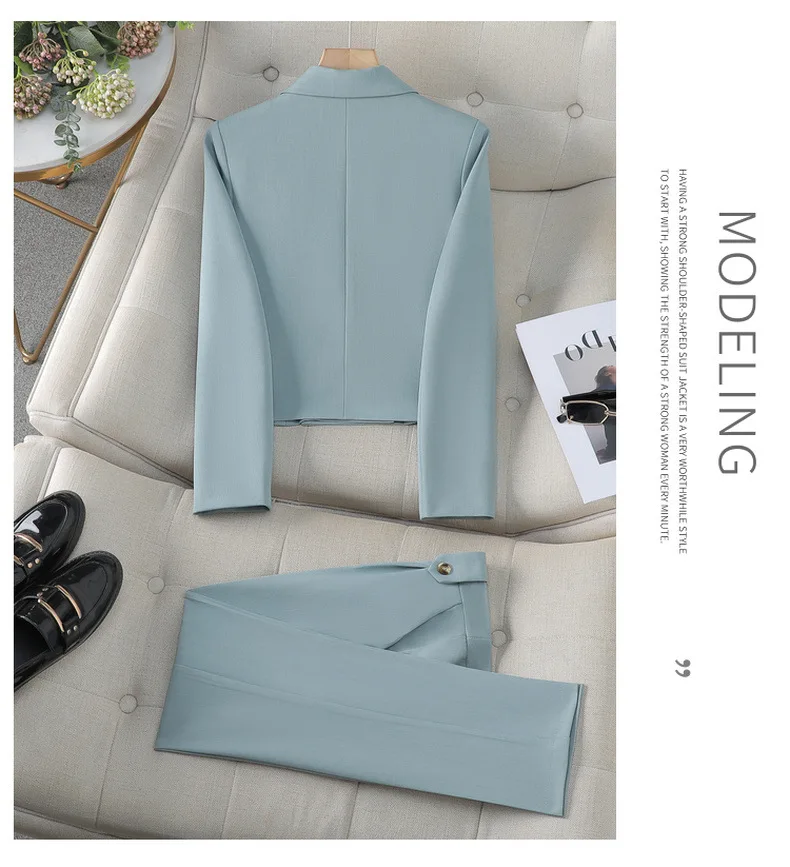 The ankle-length pants provide a modern touch while ensuring comfort and ease of movement throughout the workday.