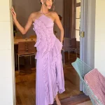 The halter neck design adds a touch of elegance, perfect for a night out or special occasion.