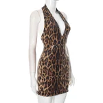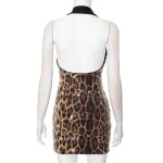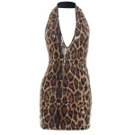 Be the first to review “CUTENOVA 2025 Summer New Women’S Sexy Sleeveless Hanging Neck Leopard Print Beaded Deep V-Neck Revealing Backpack Hip Dresses”