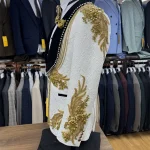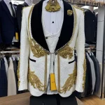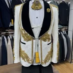 Be the first to review “DTLumika Gold Beads Appliques Suit Set for Men, Luxury Three Pieces Men’s Jacquard Suit Set, Blazer Jacket Vest Pants Costume”