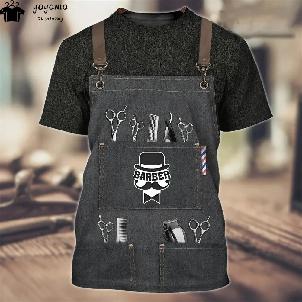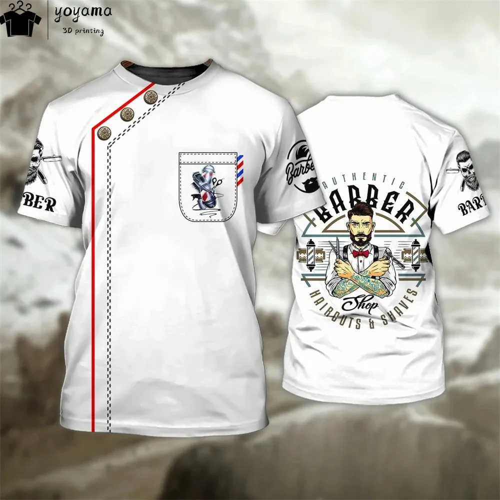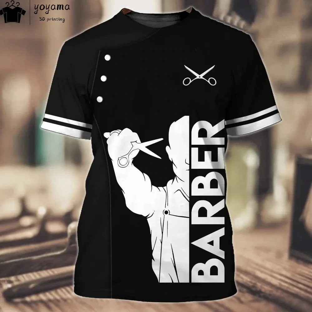 Fashion T-Shirt For Men’s Shirt 3d Print Custom Short Sleeve Tops Barber Work Clothes Oversized Tee Shirt Men’s barber clothes