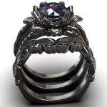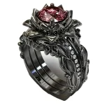 Be the first to review “Fashionable and luxurious three piece rose set with three color zircon gun black and rose gold women’s ring”