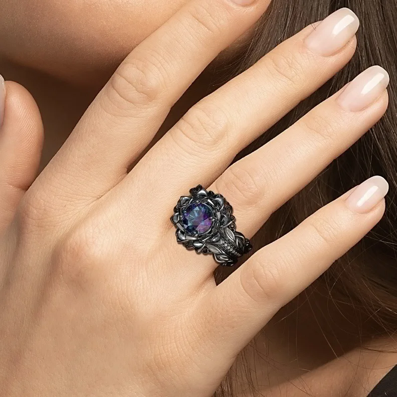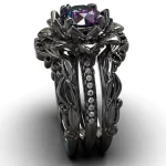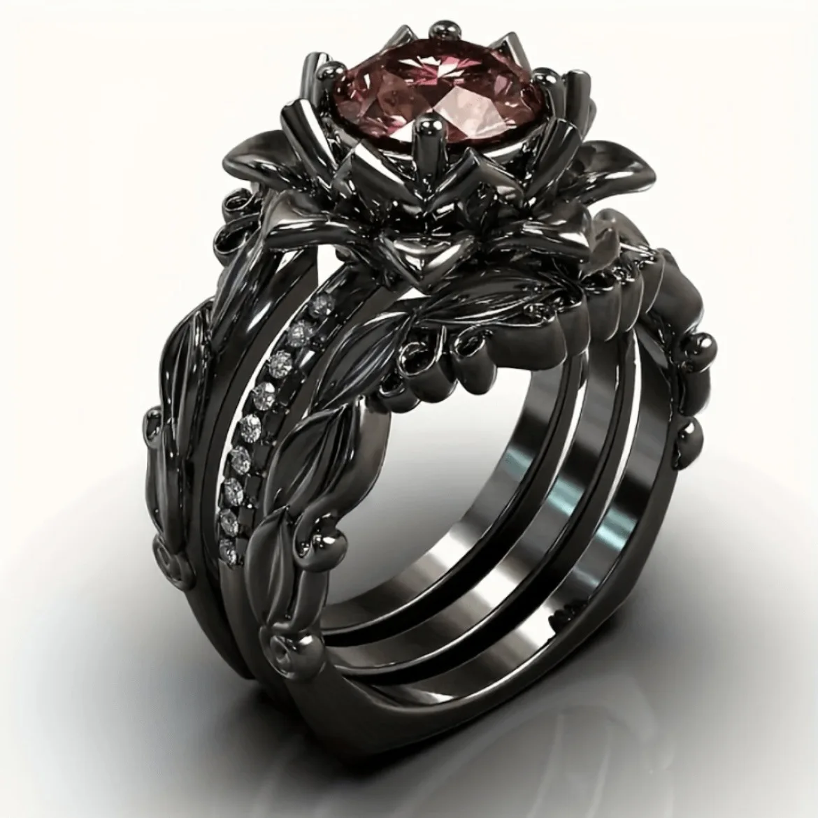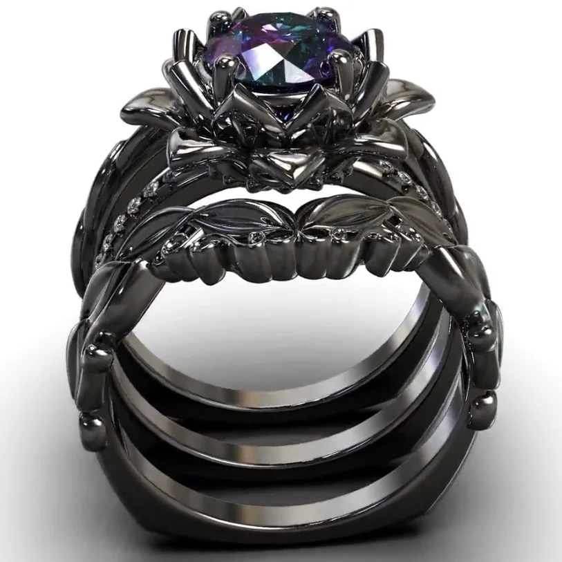 Fashionable and luxurious three piece rose set with three color zircon gun black and rose gold women’s ring