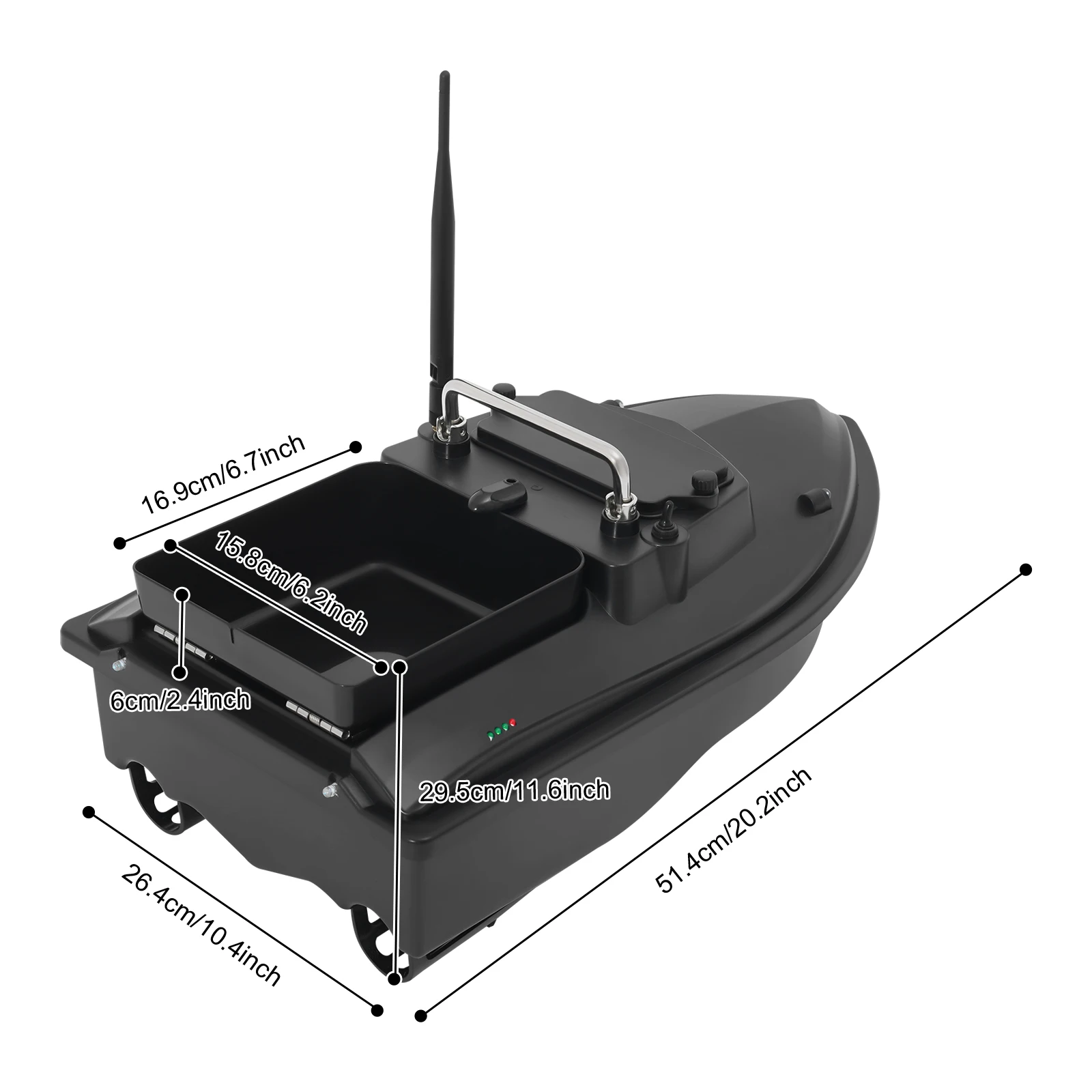 Strong Endurance Capability: The large capacity 5200mAh rechargeable battery has a long battery life, and when fully charged, it can keep the boat sailing continuously for 2 hours, meeting your fishing needs. Moreover, the dual bait hoppers can carry up to 3.31 pounds of bait, reducing the frequency of adding bait and ensuring a successful fishing trip.