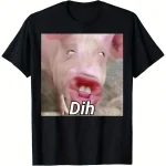 Funny Dih Brainrot Gen Z Humor T-Shirt Cotton Heavyweight Casual Tee Pig Meme Oversized T Shirt Graphic T Shirts Men Clothing