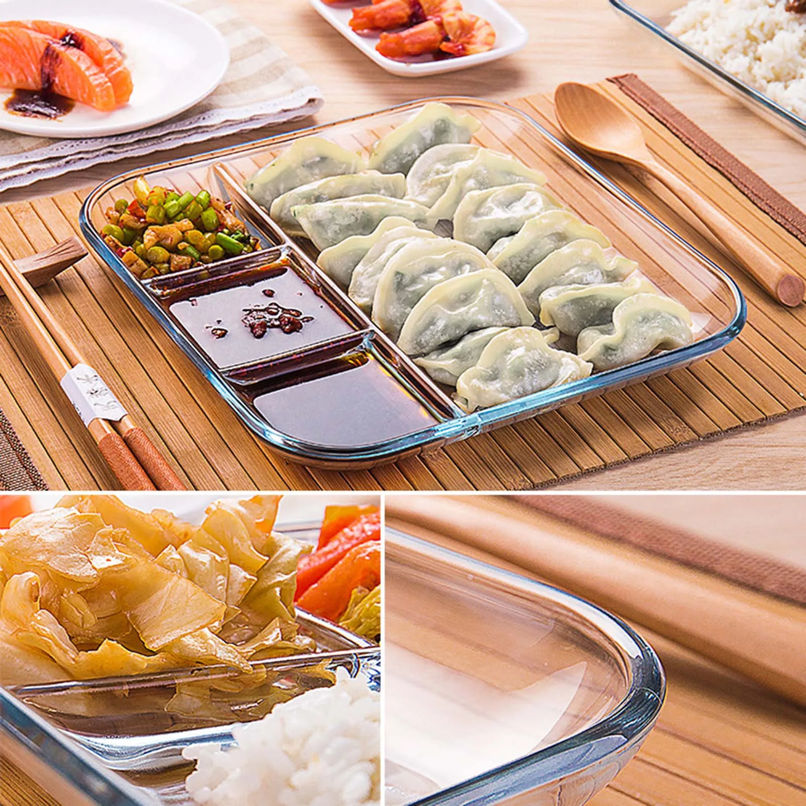 Heat Resistant Glass Dumpling Plate with Sauce Dish Divided Serving Tray Easy Clean Breakfast Plate Household Kitchen Tool