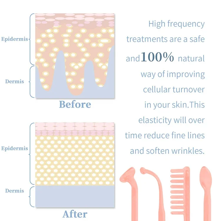 Directhighfrequencyincreasesactivityintheskin'sbasallayer,refinesskintextureandGivesanimprovementintheskin'sdefenceagainstbacteria. Ithasagermicidalandantibacterial effect,duetotheozoneformation. Ilimitssebaceoussecretions, dryinghealingpustularinfection. Impuritiesarereleasedbythedilationofskinpores.Theimprovementoflymphaticandvenousbloodcirculation,producesenhancedskintextureandoilandmoisturebalance.Becausethereisnopolarityorchemicalactionwiththiscurrent, Becausethereisnopolarityorchemicalactionwiththiscurrent. Becausethereisnopolarityorchemicalactionwiththiscurrent,chemicalscannotbedrivenintotheskin.Therearenoharmfuleffectsonthenervesormuscles.