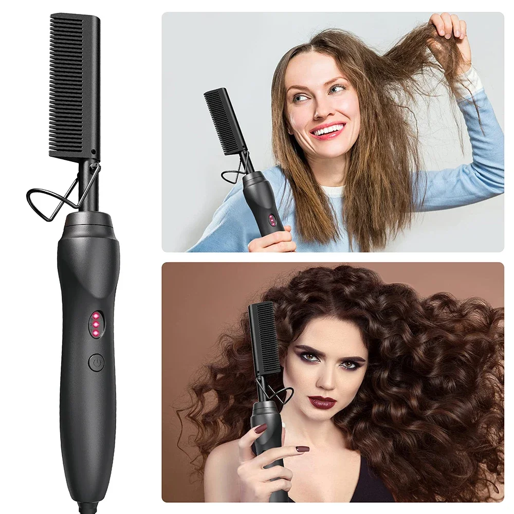 Fast heating:The hot-press comb can quickly and safely straighten rough and curly hair,making it straight as silk.The flat iron comb is evenly heated within 20-30 seconds without causing any damage to the hair.