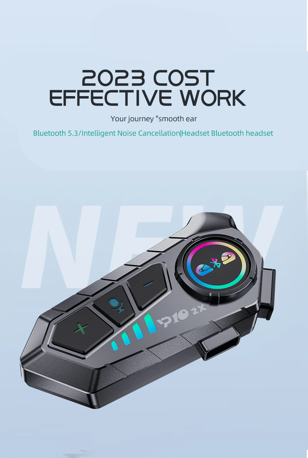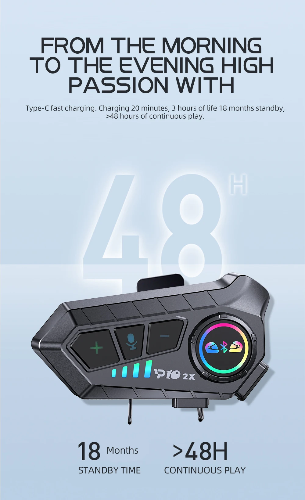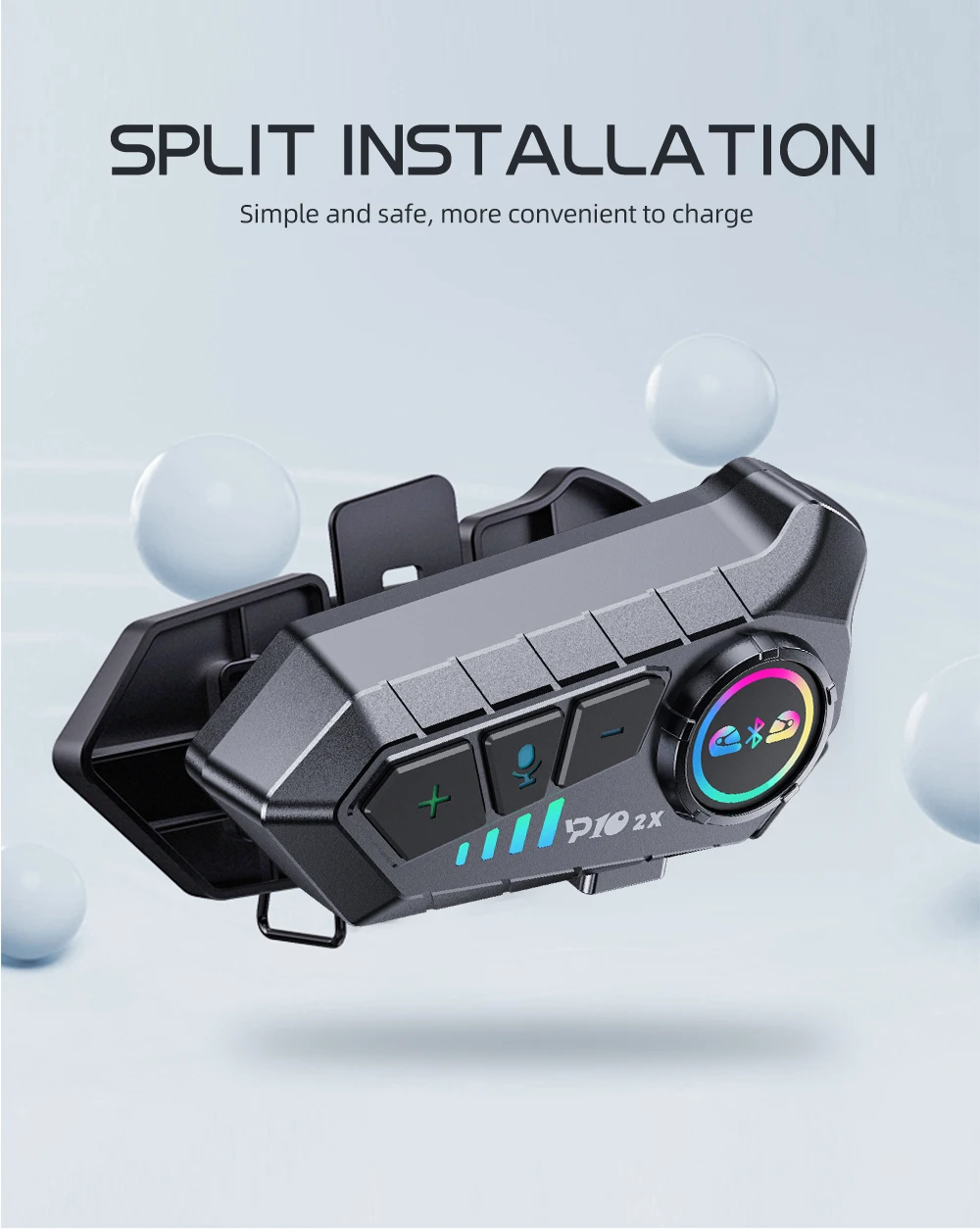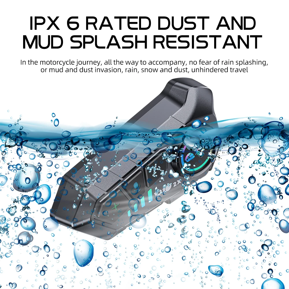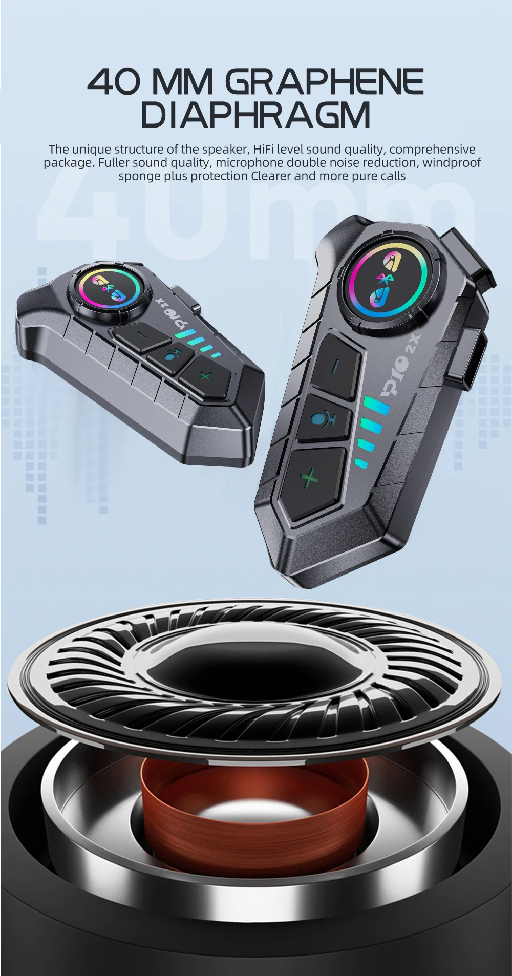 1/2x Music Interphone Bluetooth 5.3 Motorcycle Helmet Intercom Headset Waterproof 300m Play Music and Calls Simultaneously