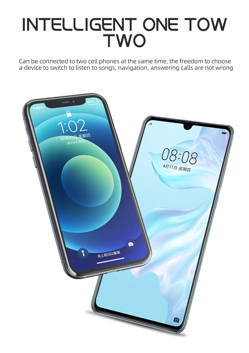You can connect two devices at the same time, choose freely, switch devices with one button to listen to songs, navigate, and answer calls