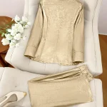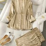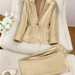 Be the first to review “Metallic lapel single button pocket women’s suit elegant jacket straight trousers suit, suitable for commuting, office, gatherin”