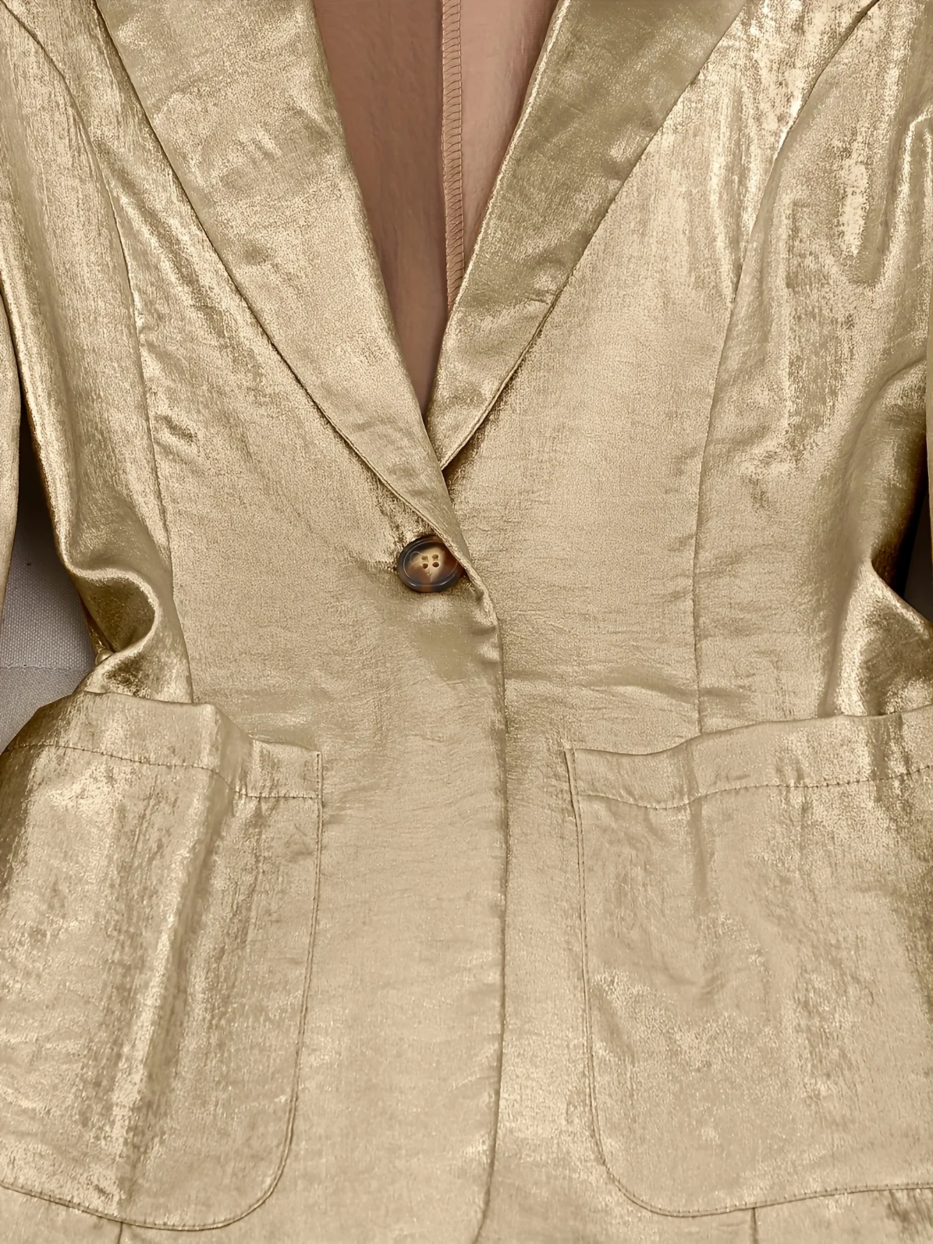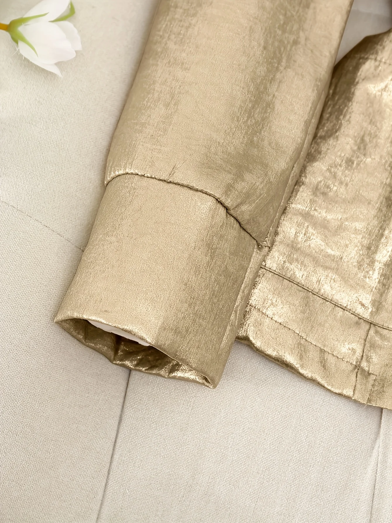 Metallic lapel single button pocket women’s suit elegant jacket straight trousers suit, suitable for commuting, office, gatherin