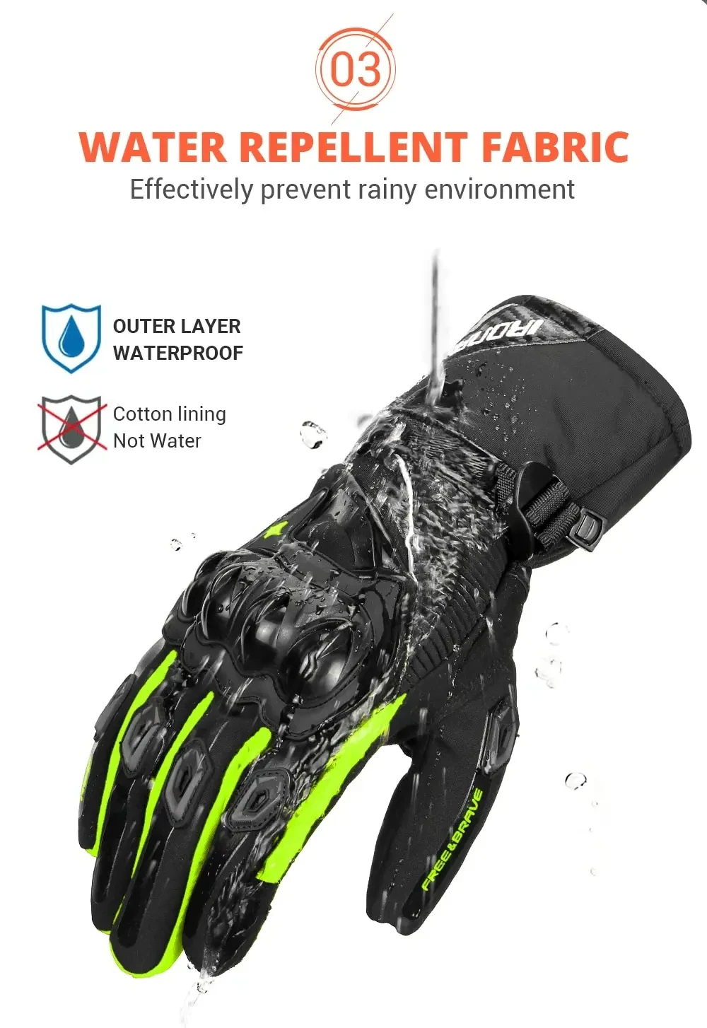 WATERPROOF: these motorbike hands gloves are waterproof, no problem riding for several hours under normal rain or even one hour under heavy rain, always keep your hands dry and warm in the cold rain snow weather day