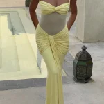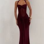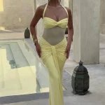 Be the first to review “Mozision Halter Backless Sexy Maxi Dress Women Fashion Patchwork Off-shoulder Sleeveless Ruched Draped Bodycon Club Party Dress”