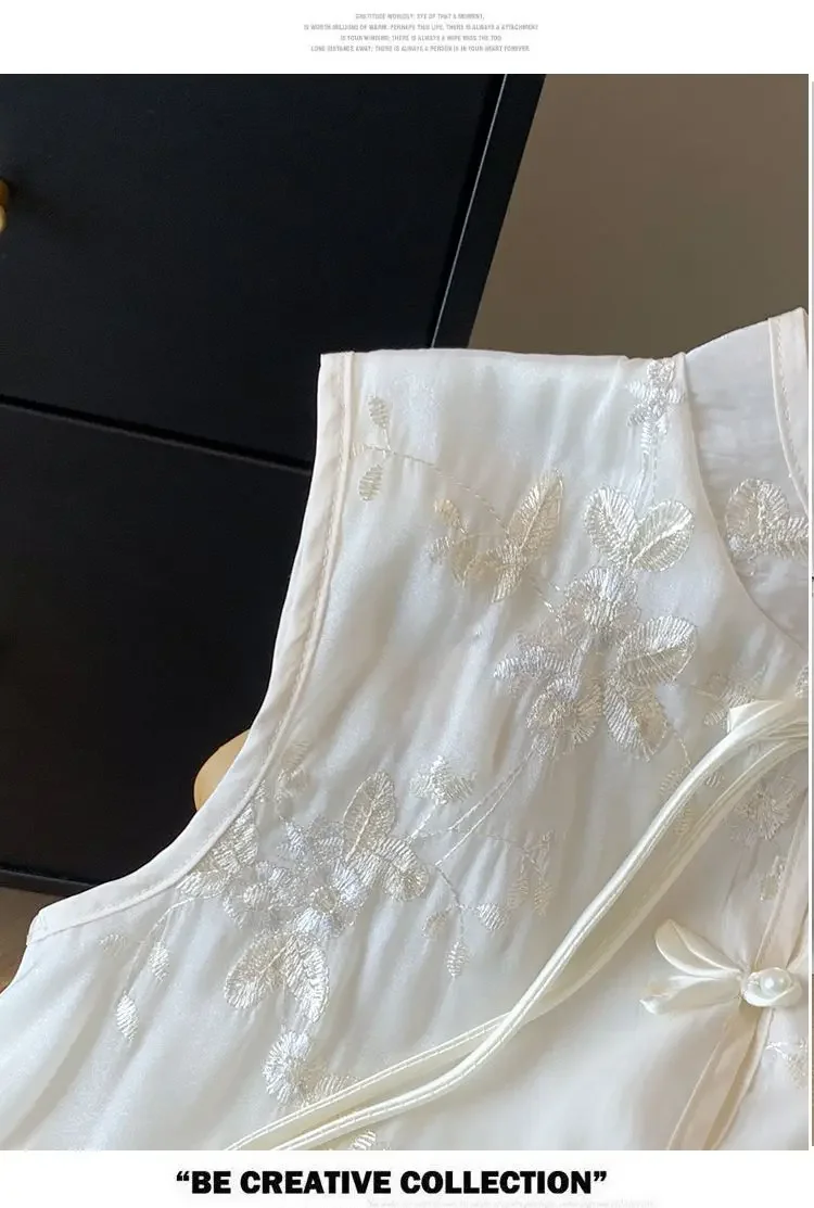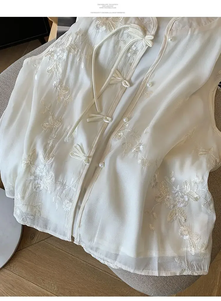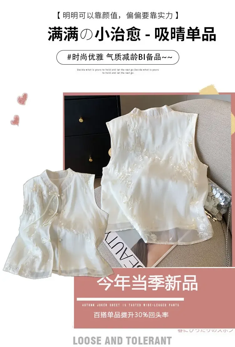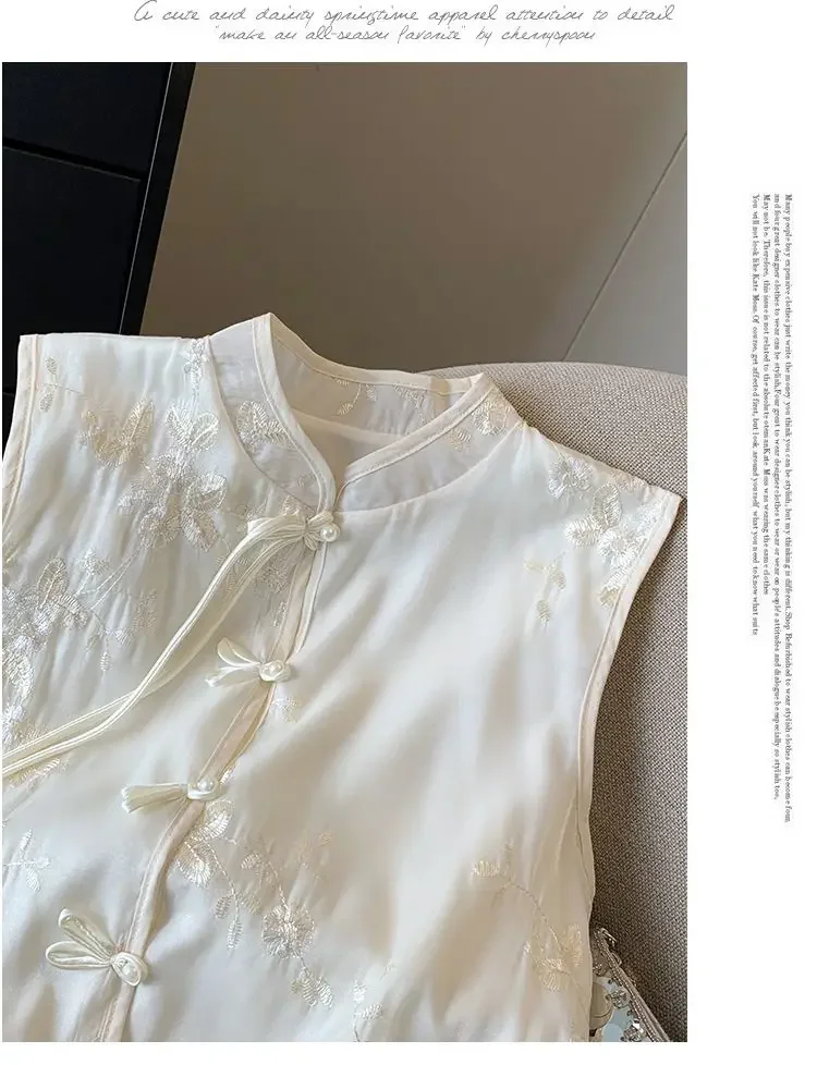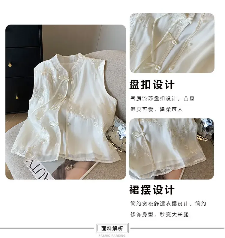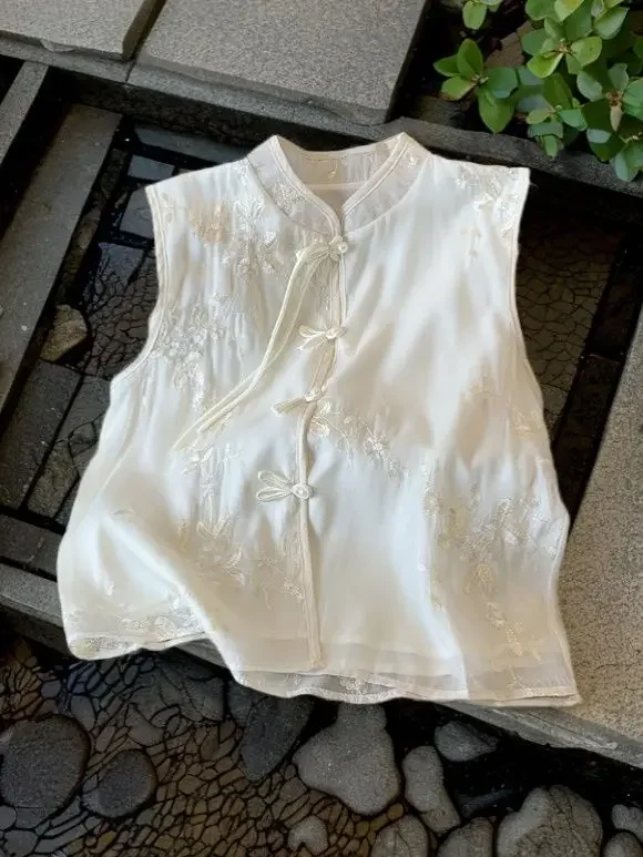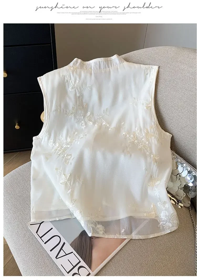 New Summer Fashion Chinese Style Stand-up Collar Embroidered Vest Versatile Age-reducing Sleeveless Shirt Top for Women