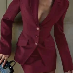 Be the first to review “Oymimi Fashion Wine Red Two Piece Set For Women Elegant Long Sleeve Single Breasted Blazers And Slim Simple Mini Skirts Sets”