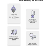 – Intelligent Temperature Control Technology: An Innovative LED ring design for the different temperature modes: Red for hot air, Orange for warm air and blue for cool air. Long press for alternating hot, warm and cool air, ideal for all hair type including curly thick and fine hair. Additional it includes and NTC intelligent temperature control sensor that accurately adjusts the temperature 110 times per second, ensuring a constant temperature to protect your hair from heat damage.