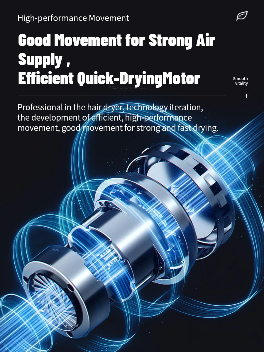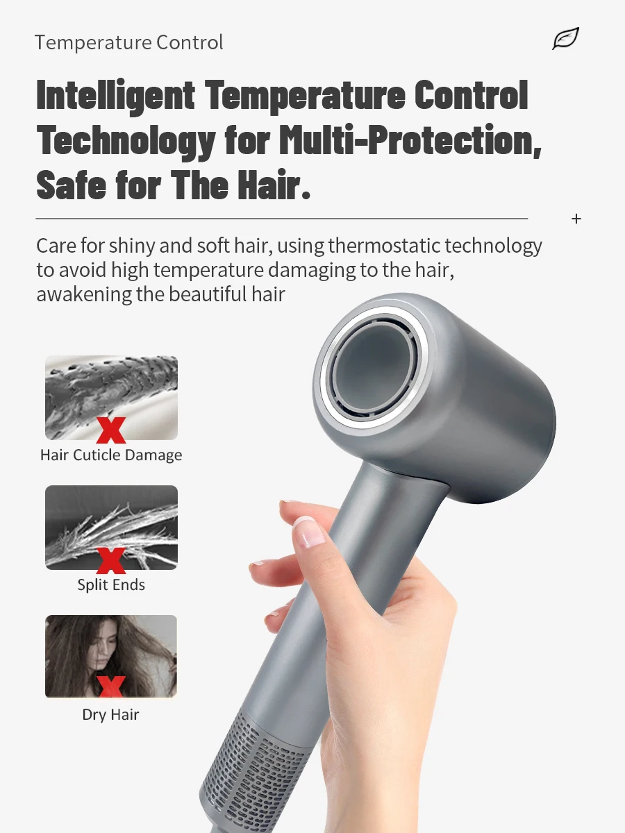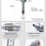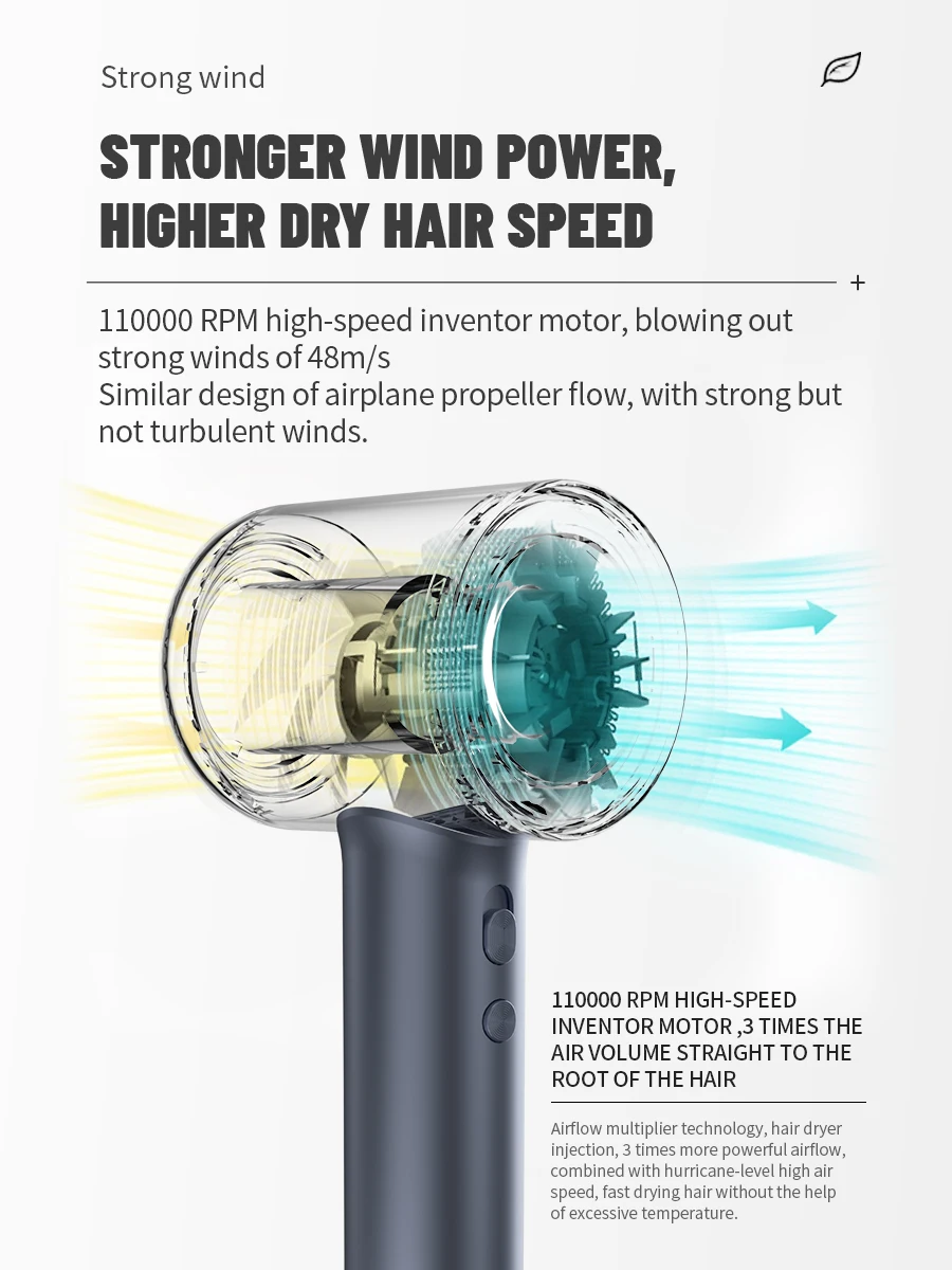– Lightning-fast Dryer: Max.wind speed of 48m/s, instantly removes moisture from the hair, 5 times and 80% more efficiently than others
