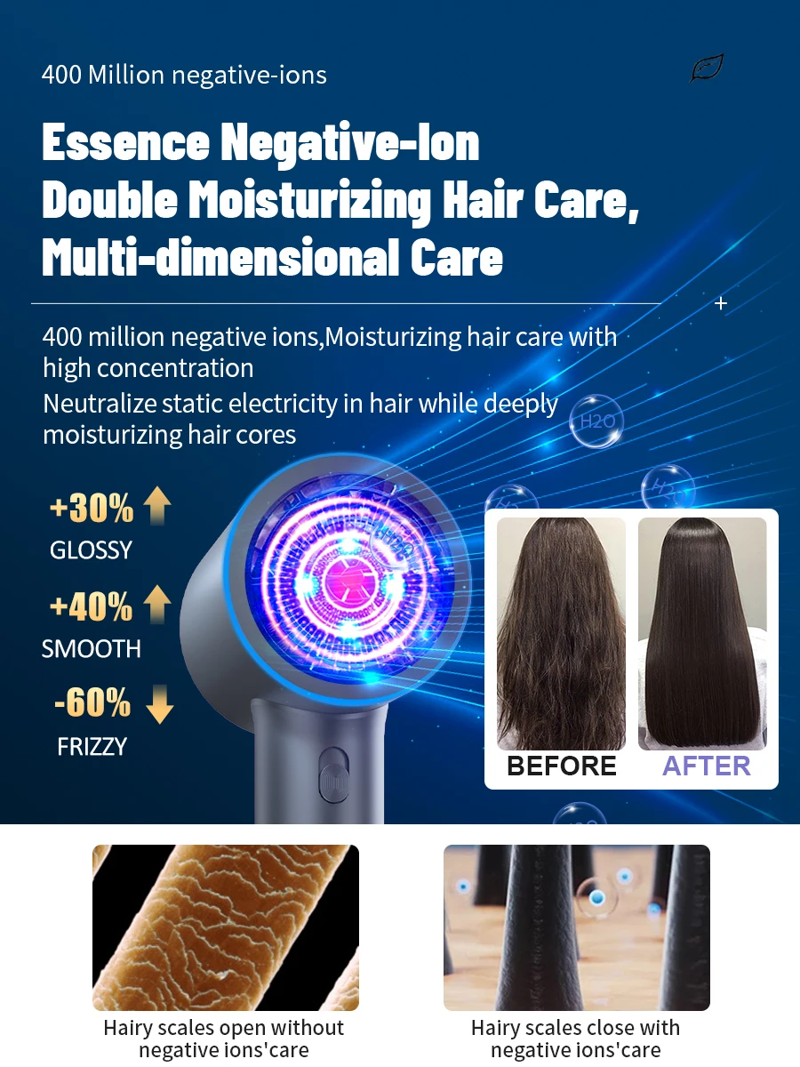 – 40 Millions of Negative Ions For Hair Care : Keep hydrated and avoid damage