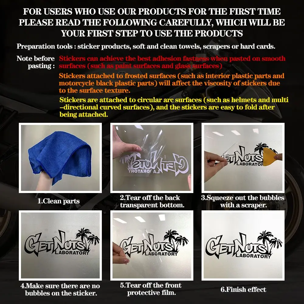 Wipe the place going to be posted, make sure surface is CLEAN and DRY. (If don’t wipe before stick, stickers may attract car surface dust and won’t stick. )