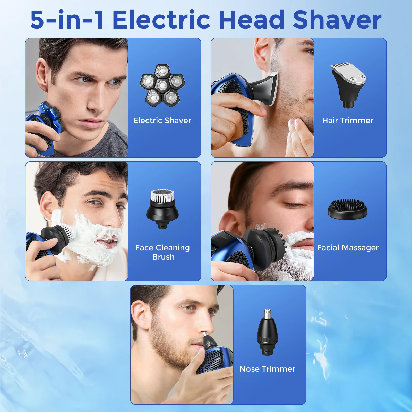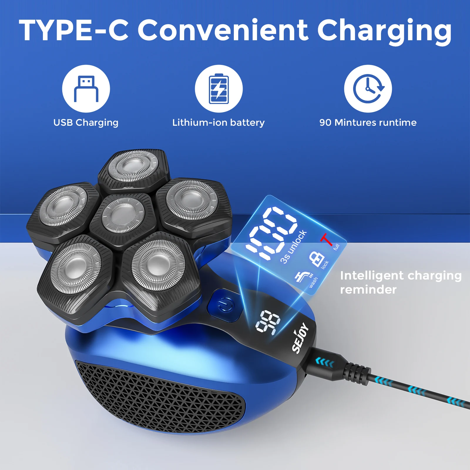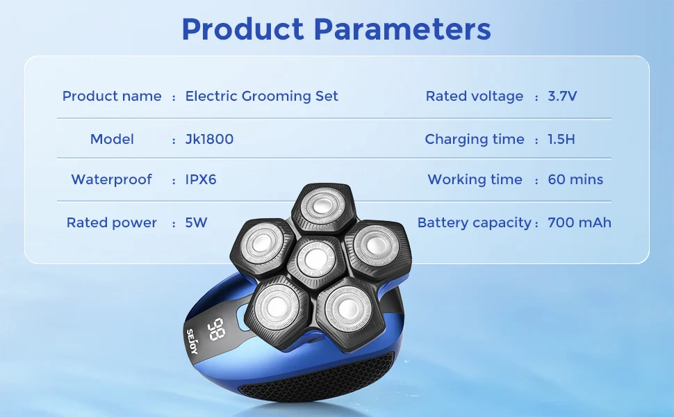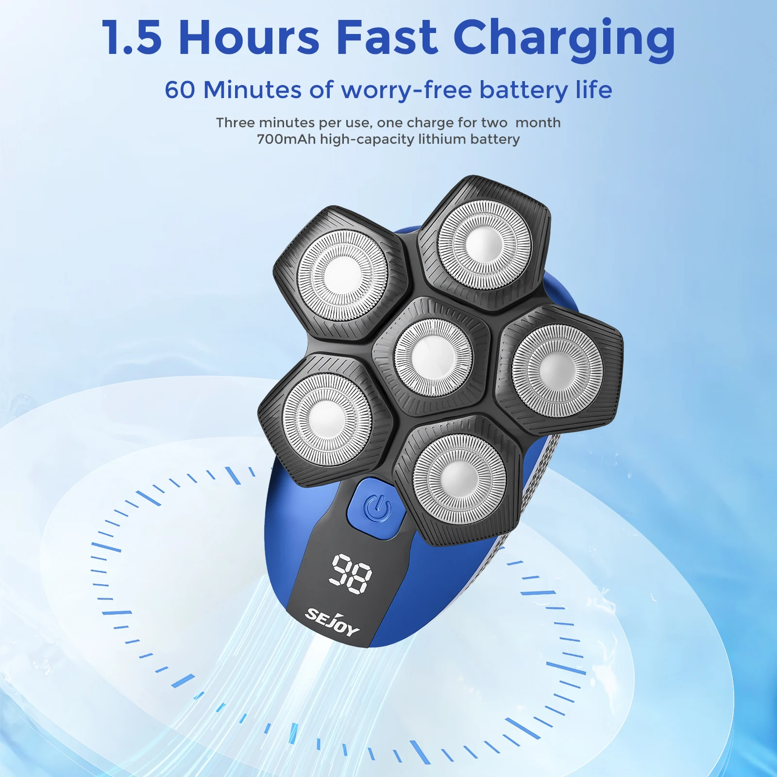 Sejoy JK-1800 Multifunctional Head Shavers for Bald Men 6 Floating Blade Rechargeable Nose Hair Trimmer Grooming Kit