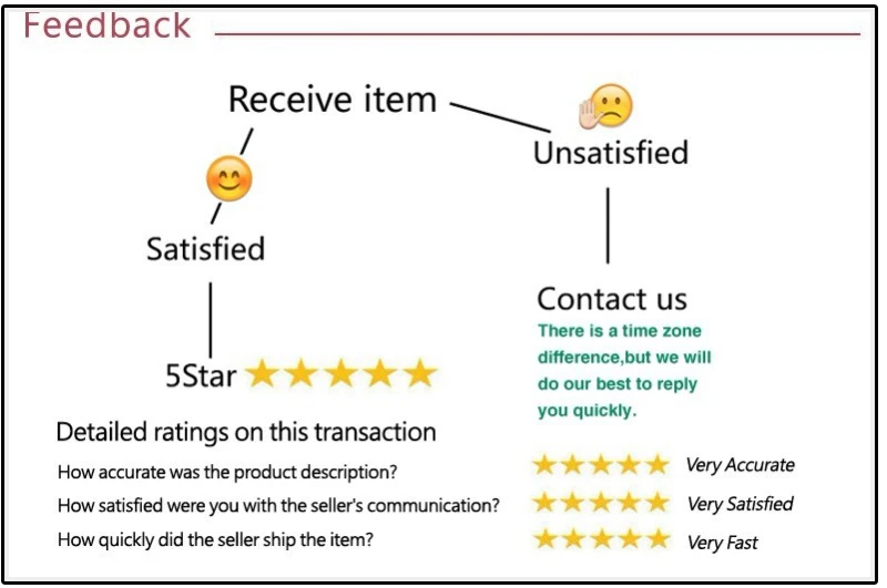 Not satisfied? Contact us before leaving a negative feedback, we are happy to help sincerely, and to improve our service and goods' quality at the same time.