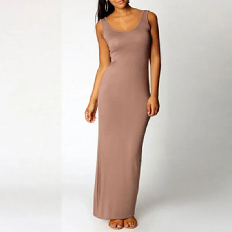 Sleeveless Women High Stretch Tank Robe Summer O-neck Bodycon Long Dress Ladies Solid Slim Beach Maxi Dresses Vestidos De Verano