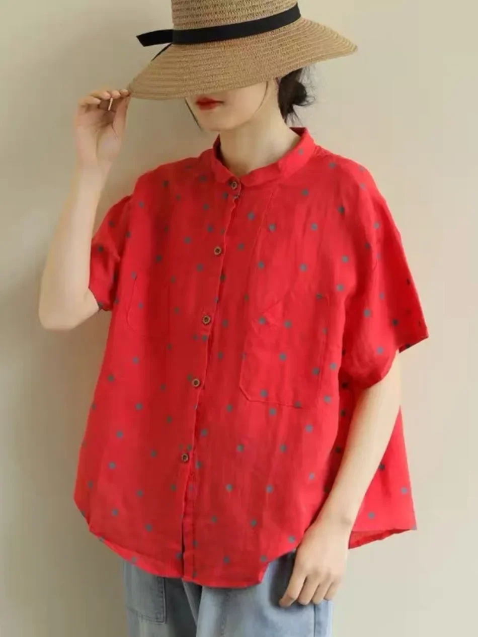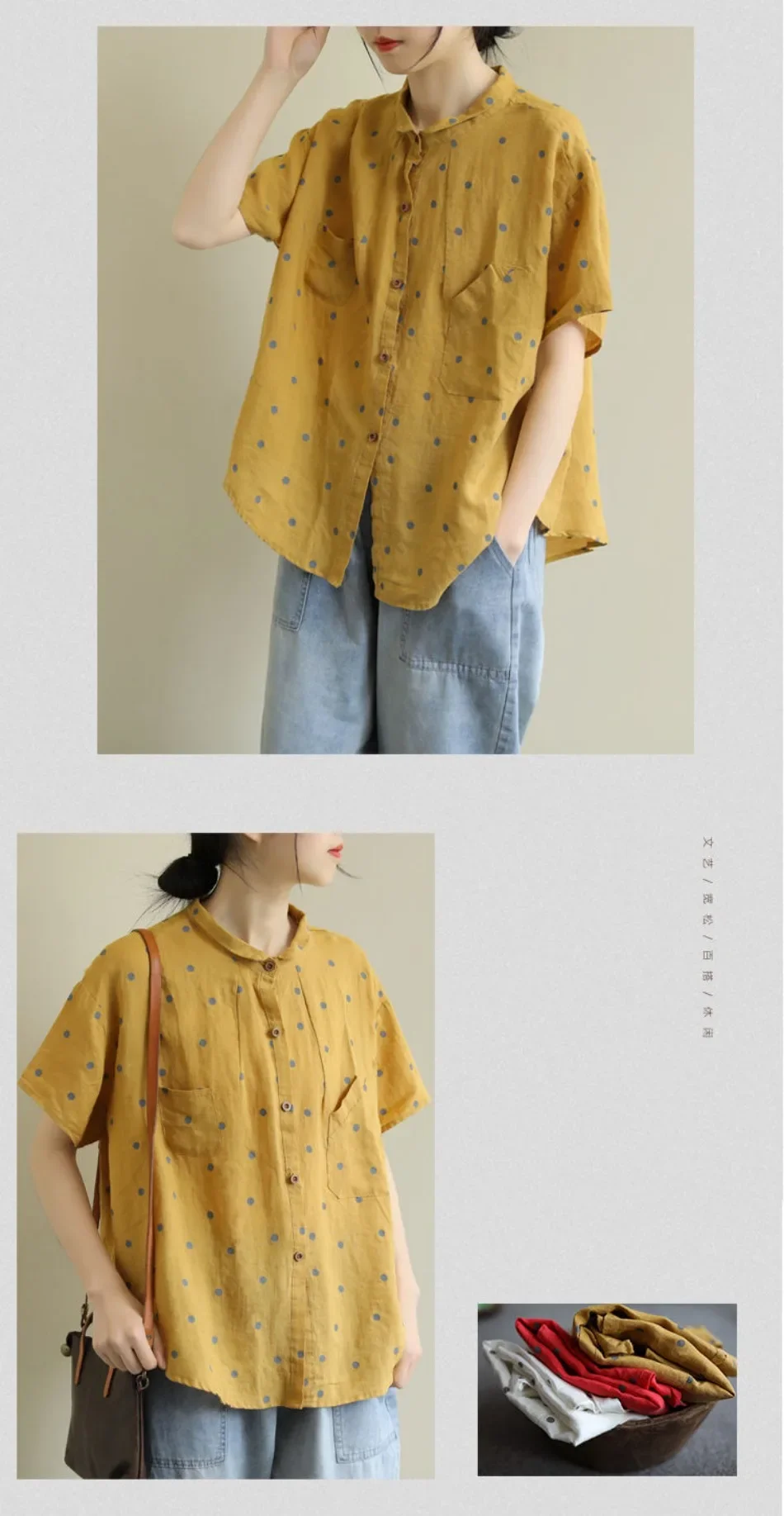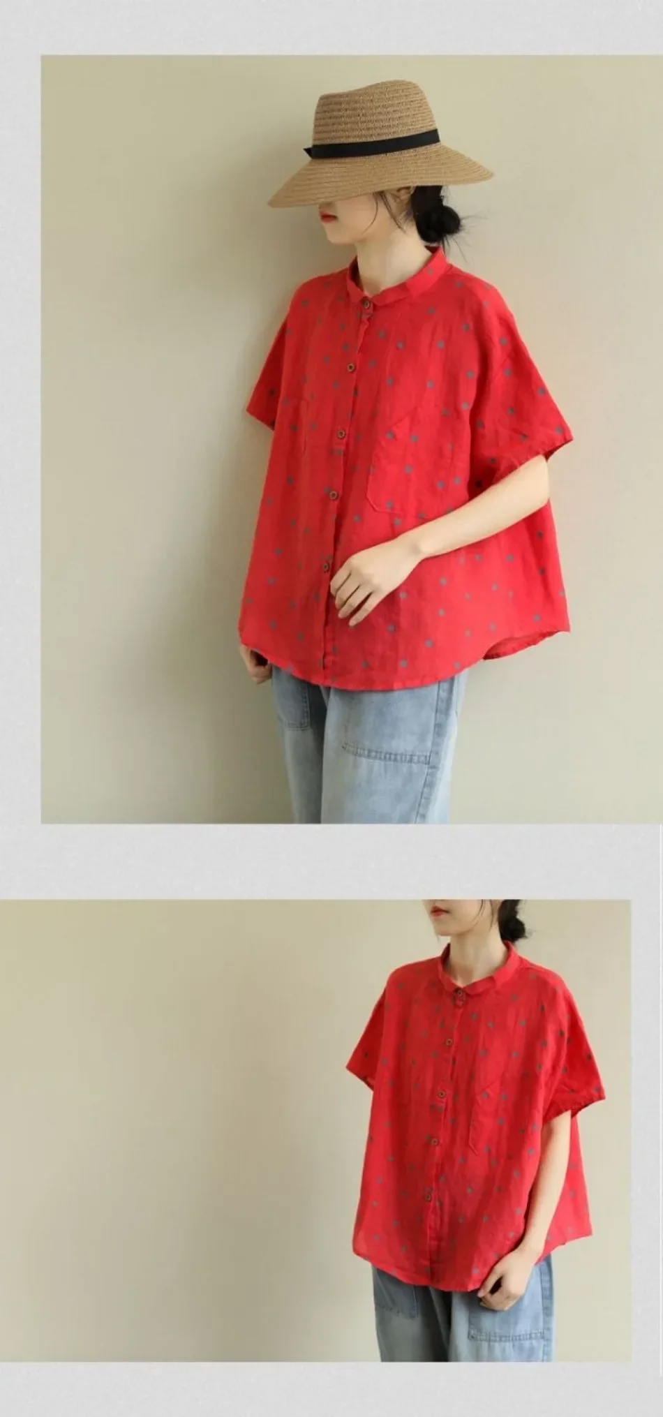 Summer Women Shirt Plus Size Cotton Linen Blouses Female Short Sleeve Shirts Casual Loose Vintage Tops Blouse Women’s Clothing