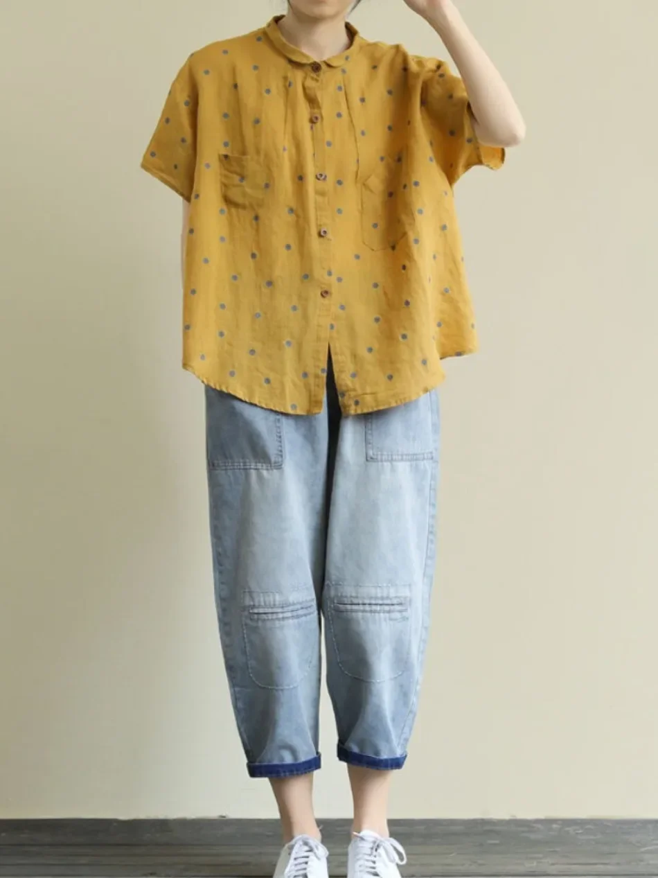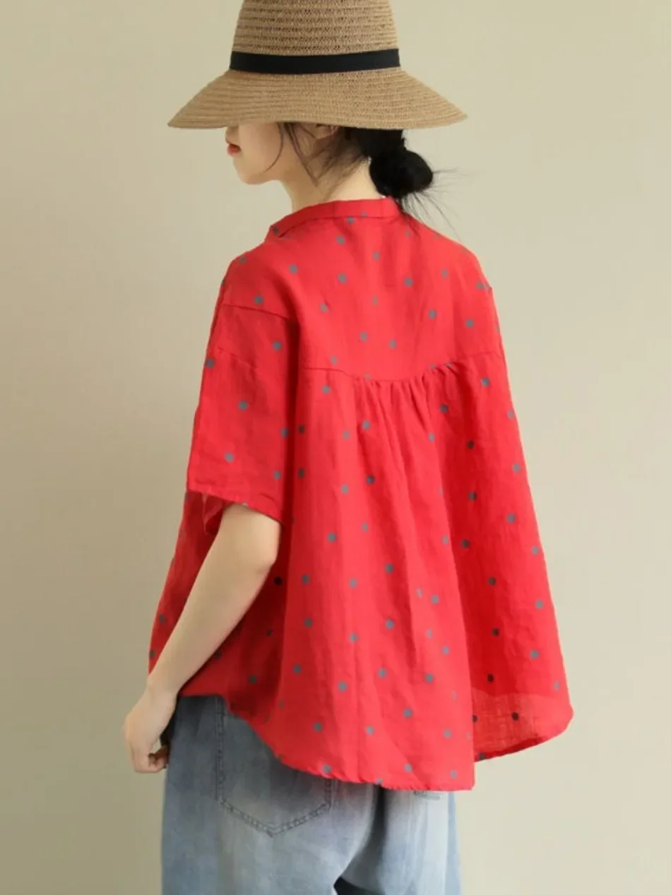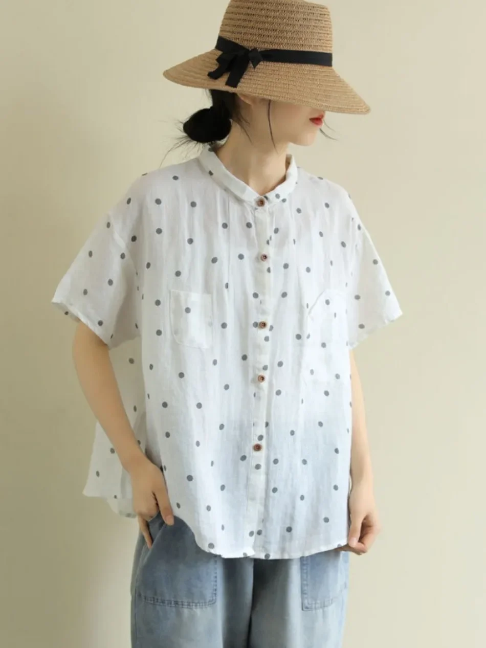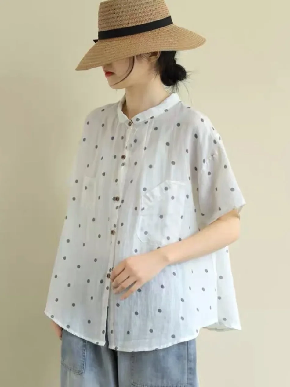 Summer Women Shirt Plus Size Cotton Linen Blouses Female Short Sleeve Shirts Casual Loose Vintage Tops Blouse Women’s Clothing