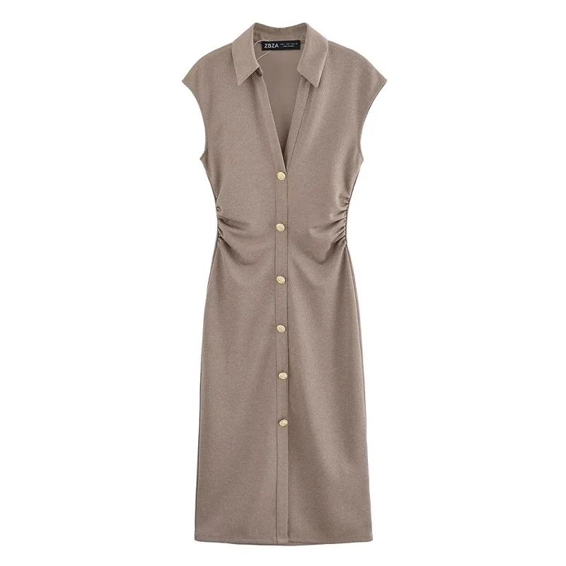 TRAF 2025 Pleated Midi Dresses for Women Sleeveless Shirt Dress Woman White Black Women’s Summer Dress Draped Party Dress Women