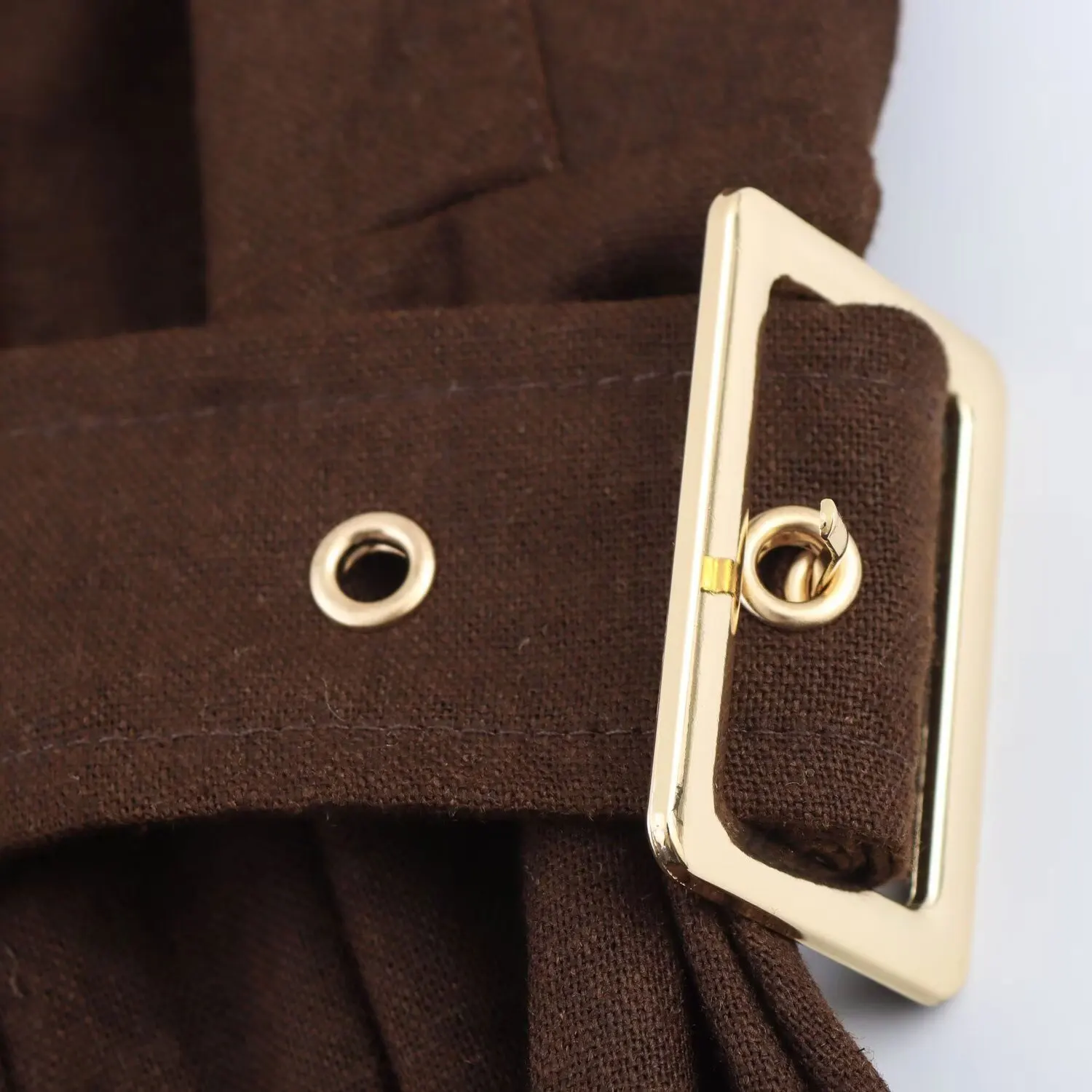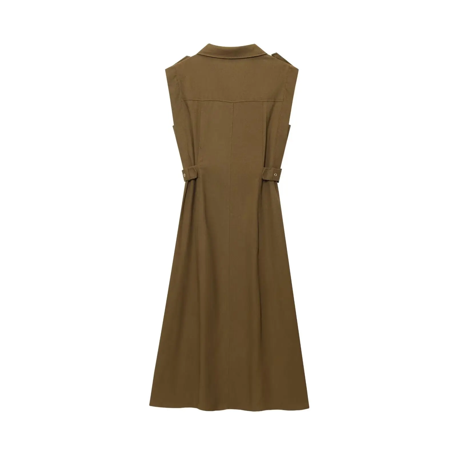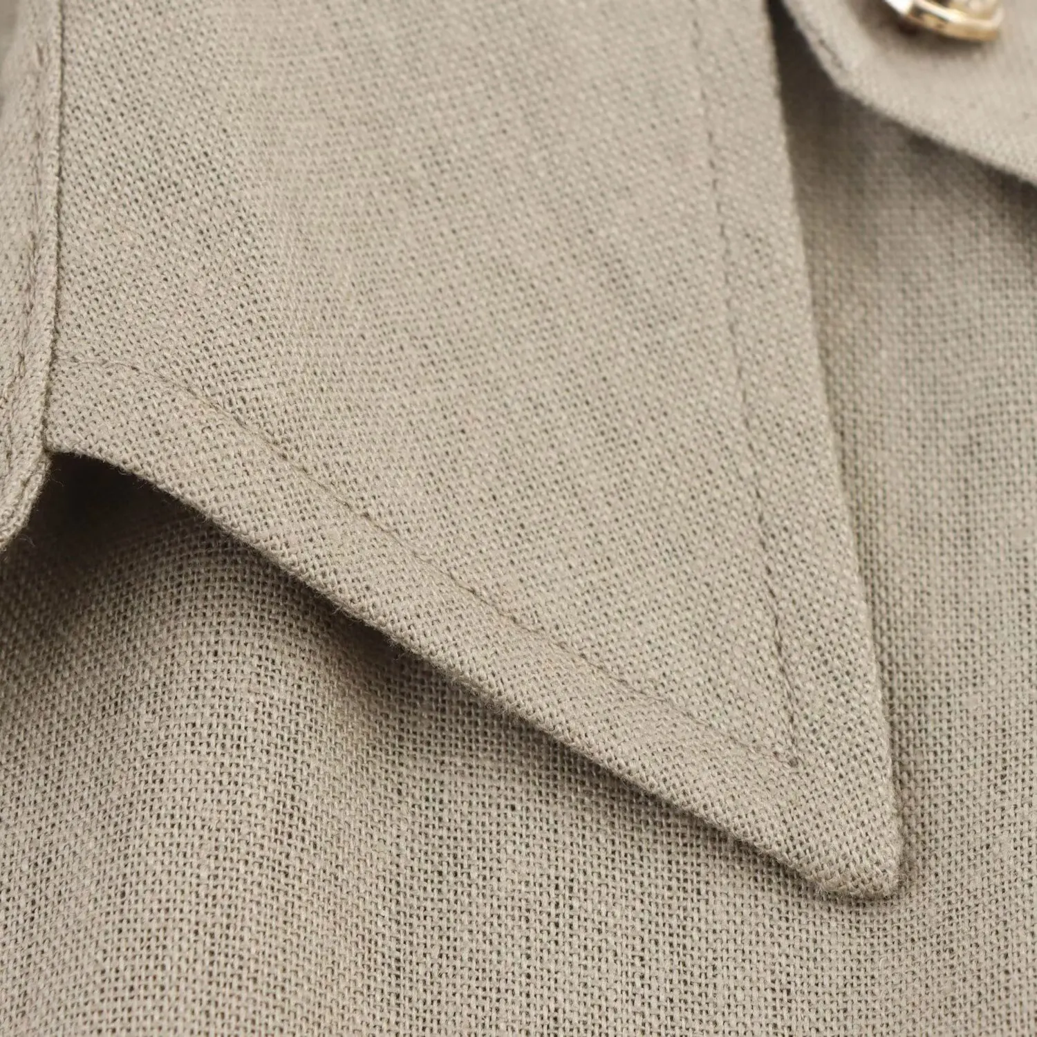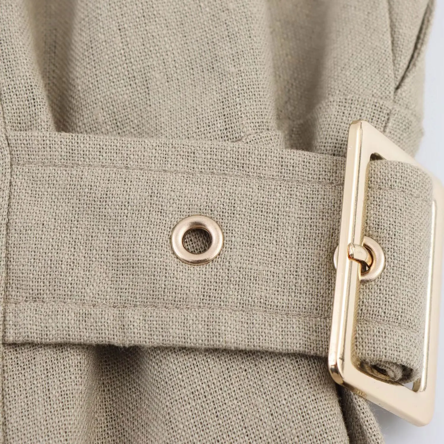 TRAFZA Women’s Summer Vintage Cozy Linen Midi Dress Solid Lapel Single-breasted Waist With Side Loops Fake Pockets Trendy Dress