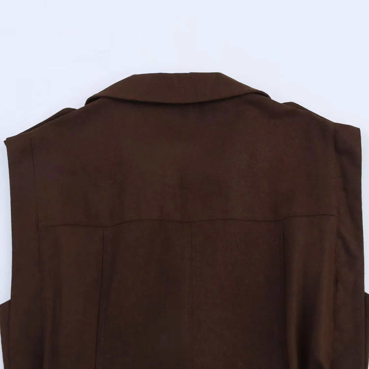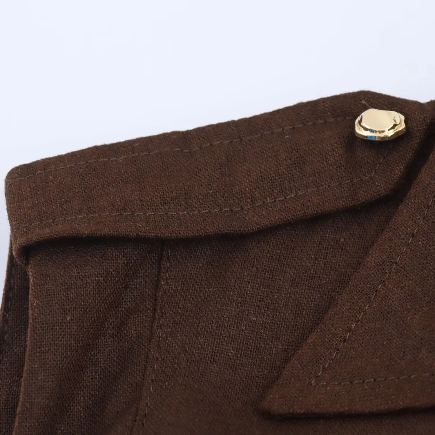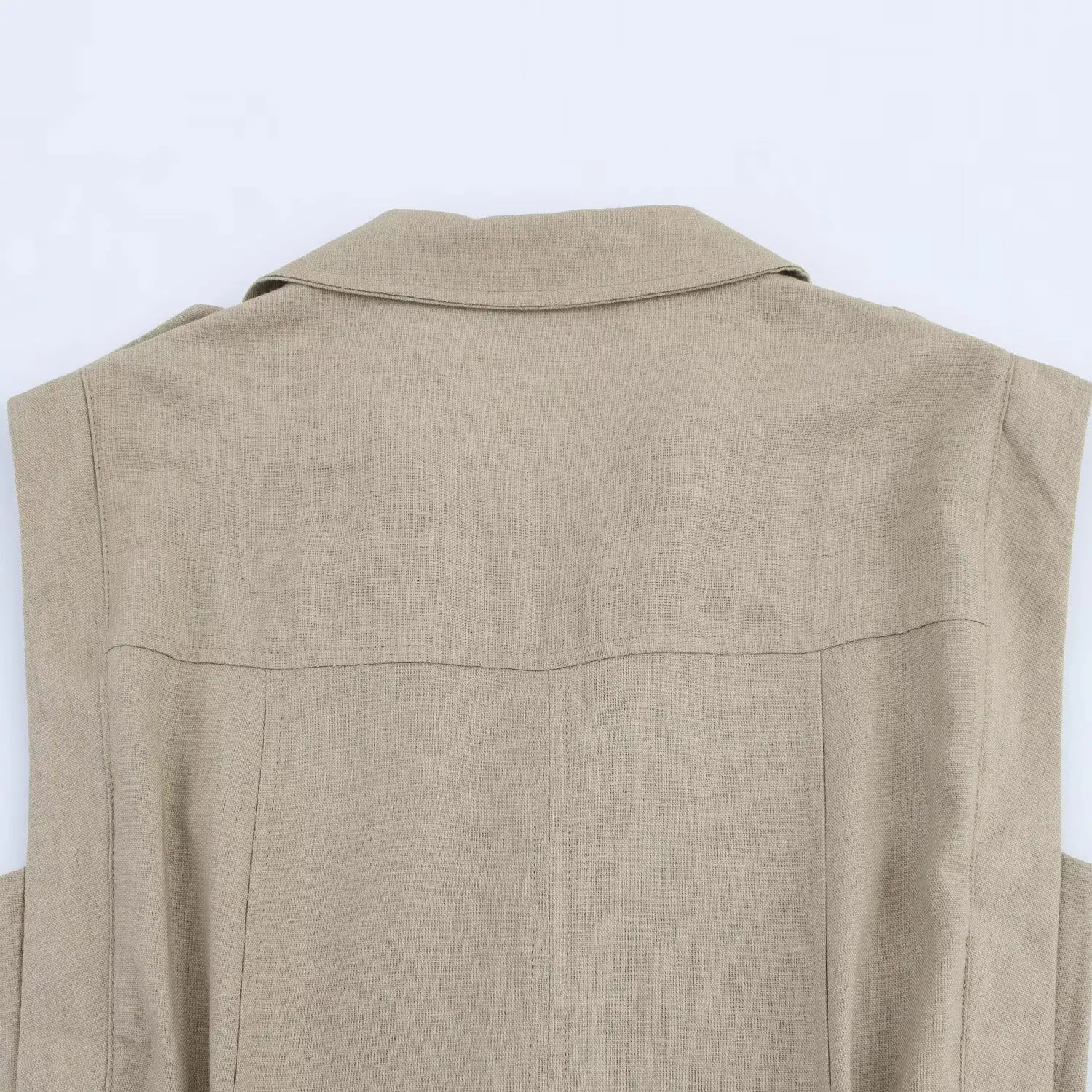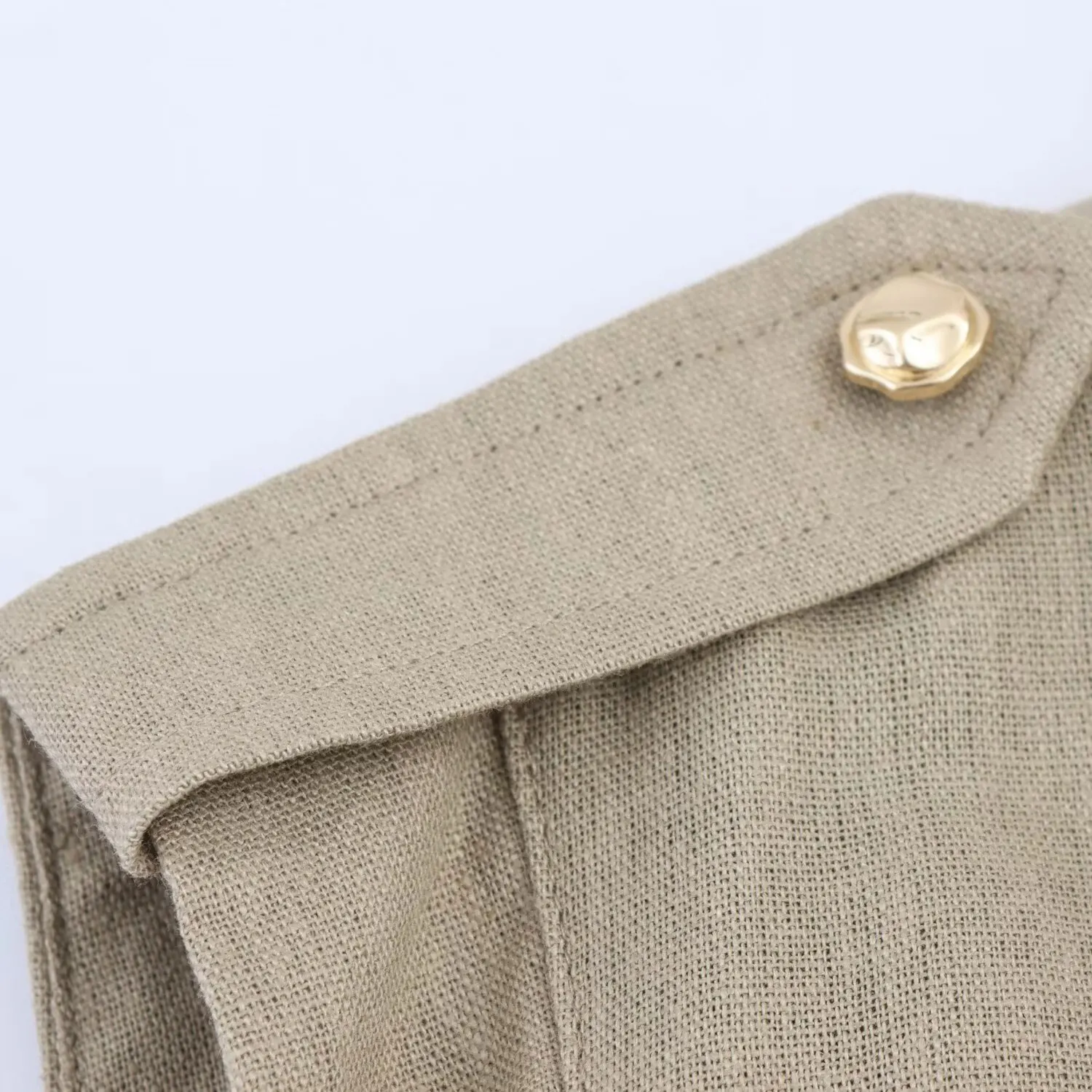TRAFZA Women’s Summer Vintage Cozy Linen Midi Dress Solid Lapel Single-breasted Waist With Side Loops Fake Pockets Trendy Dress