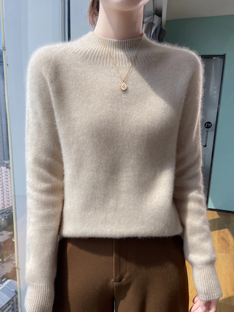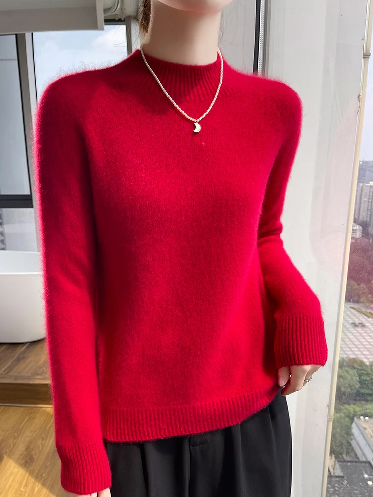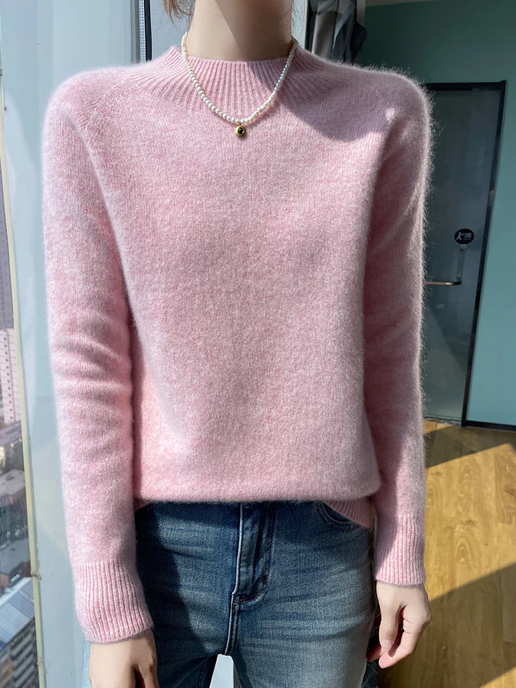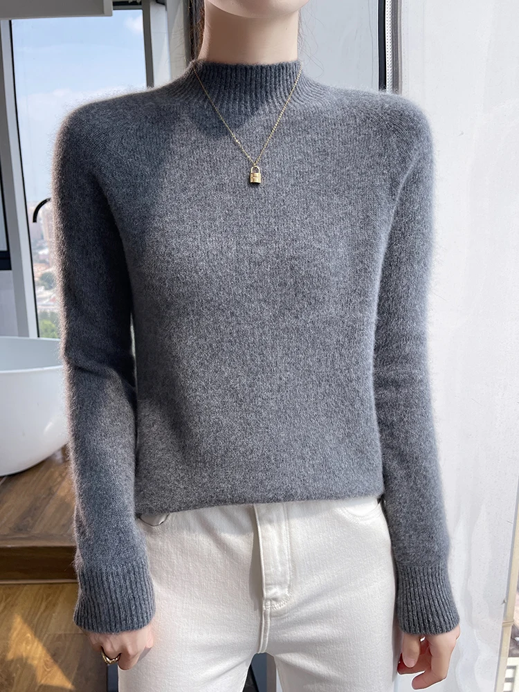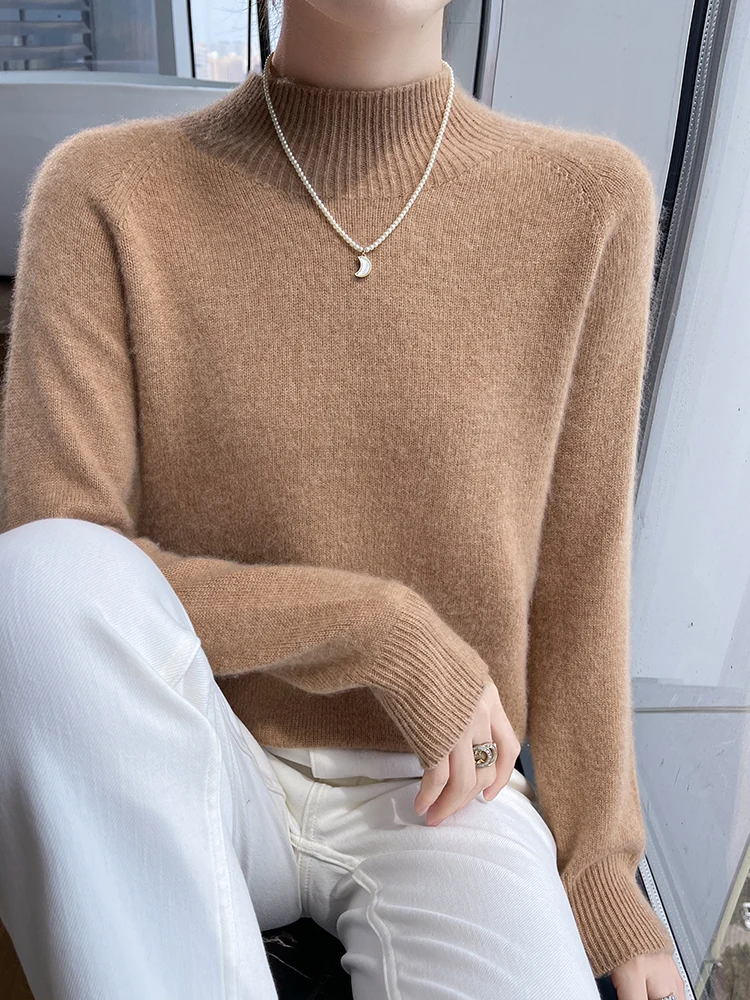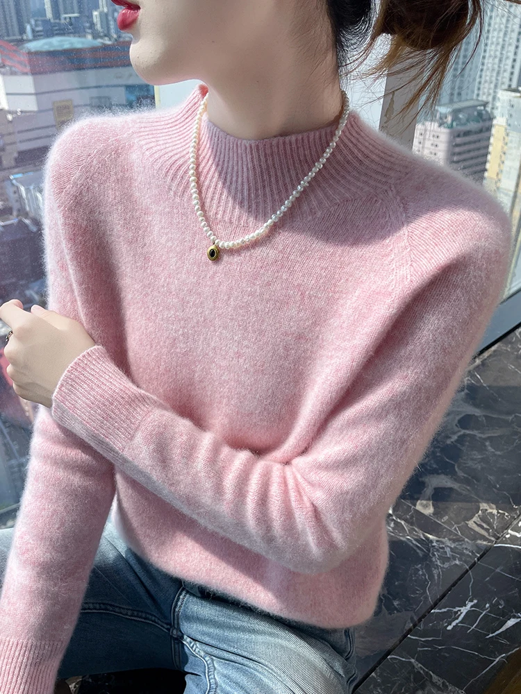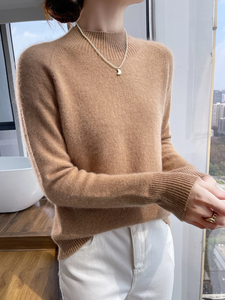 Women’s Cashmere Mock Neck Sweater Pullovers Thick Autumn Winter 100% Merino Wool Knitwear Raglan Sleeve Solid Basic Casual Tops