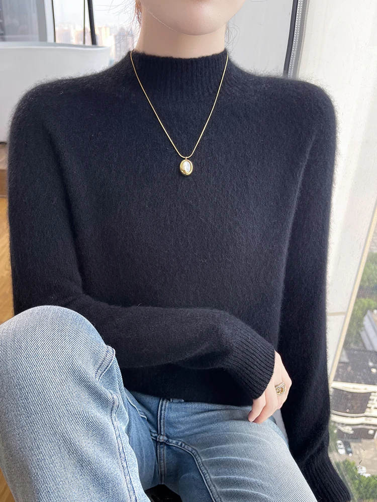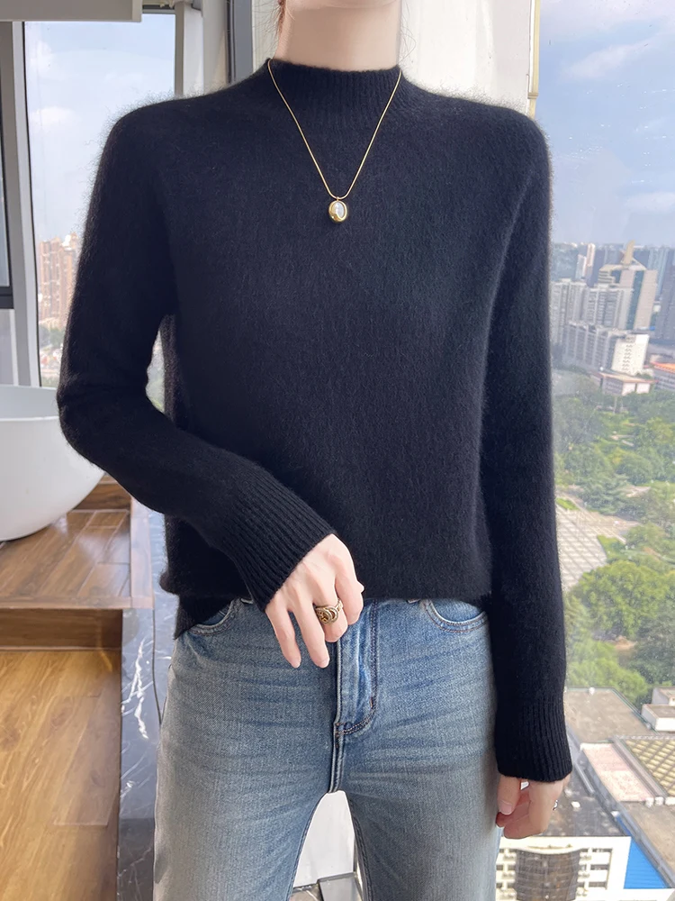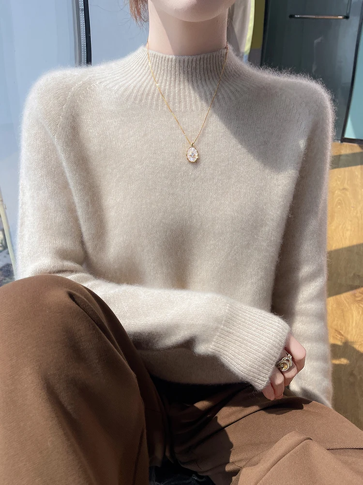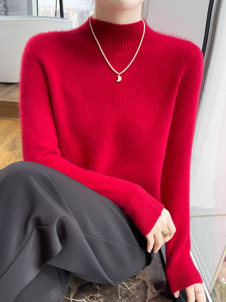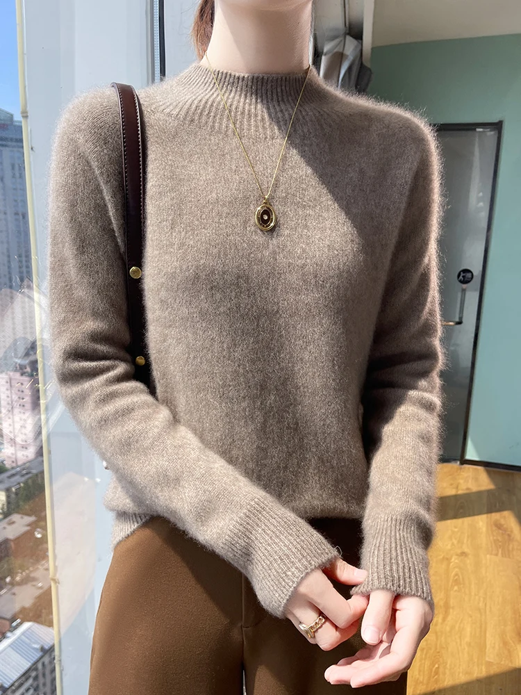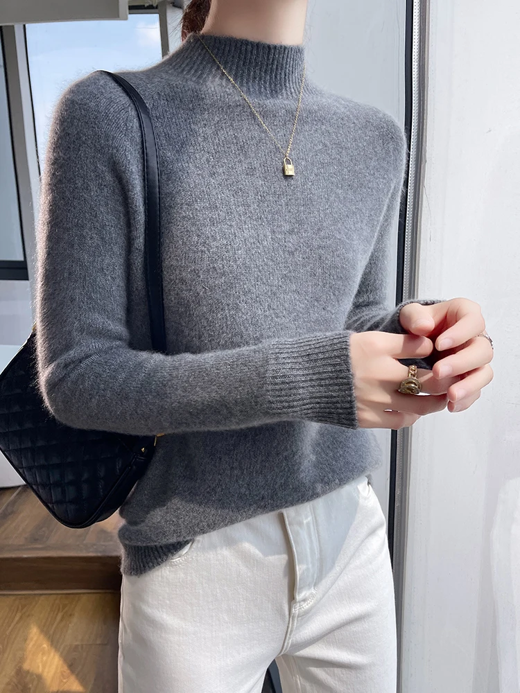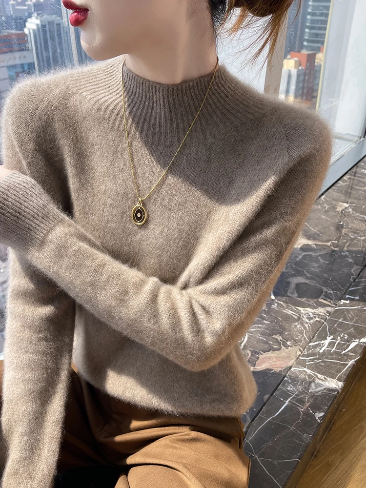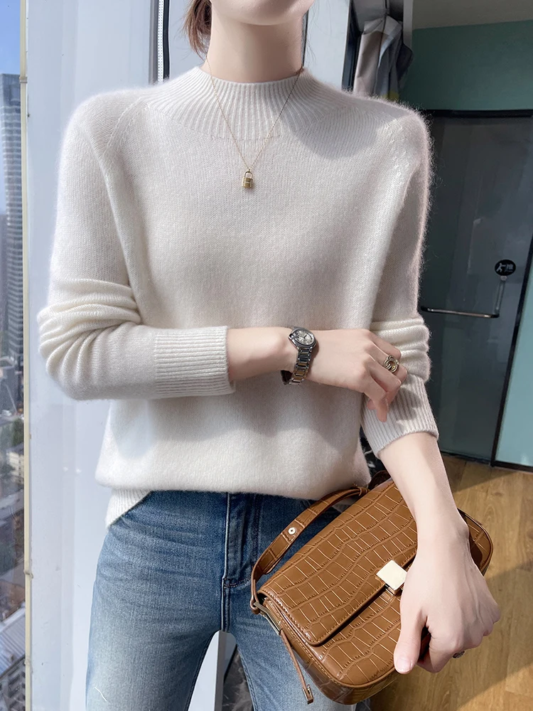 Women’s Cashmere Mock Neck Sweater Pullovers Thick Autumn Winter 100% Merino Wool Knitwear Raglan Sleeve Solid Basic Casual Tops