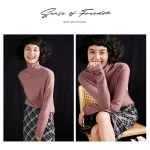 The high collar provides extra warmth and a chic office lady look, perfect for cooler days.