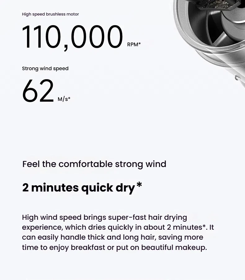 1. Ultra-High Speed Motor – 110,000 RPM for fast and efficient drying.