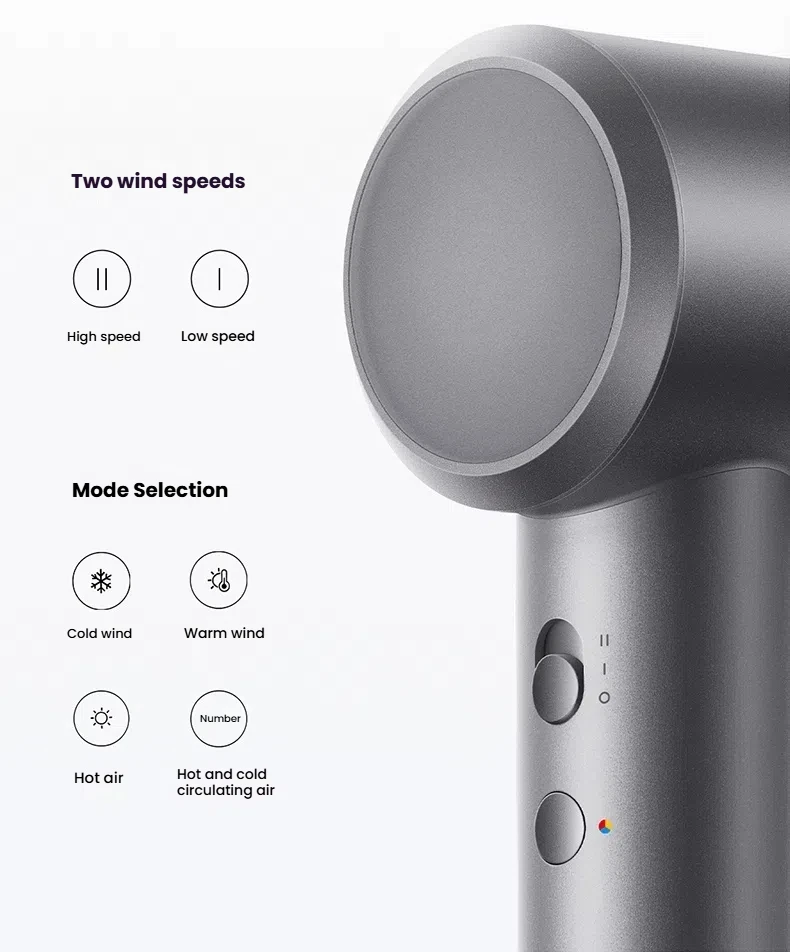 XIAOMI High Speed Hair Dryer H501 Negative Ion Hair Care 110000 Rpm Dry 220V CN Version (With EU Adapter) 62m/s wind speed
